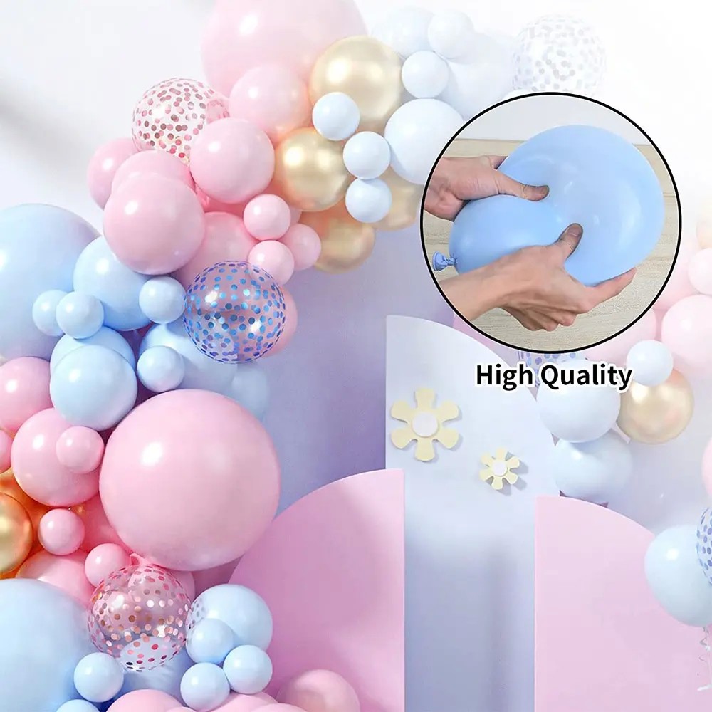 Baloane decorative pentru GENDER PARTY, Flippy, Arcada Set 130  baloane, Arcul de Baloane Roz si Albastru, Baloane Confetti Aurii, Multicolor
