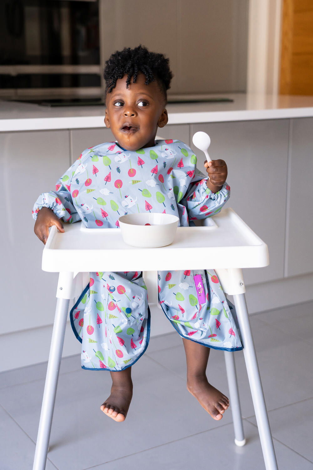 Cand nu mai aveti nevoie de protectia completa oferita de kit-ul de hranire Tidy Tot, noua baveta lunga va deveni aliatul perfect. Special conceputa pentru bebelusi si copii mici pana la 3 ani, aceasta baveta asigura o acoperire optima in timpul meselor si sesiunilor de joaca, fiind una dintre cele mai lungi bavete disponibile pe piata.