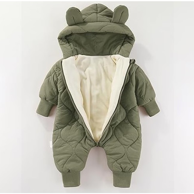 Combinezon de Iarnă Flippy, pentru Bebeluși, cu Urechi și Mâneci Elastice, 66 cm, Verde– Călduros, Moale, Unisex
