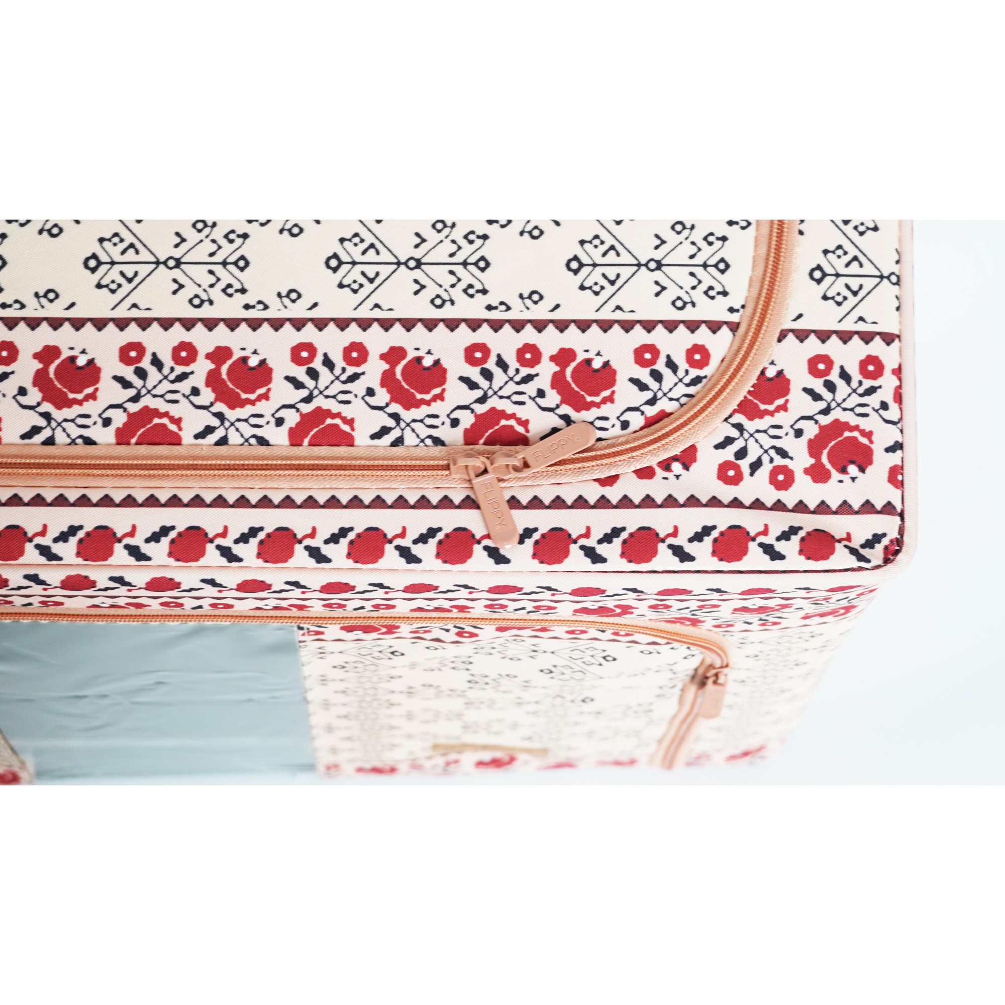 Cutie de Depozitare Pliabila, Flippy,100 L din Bumbac si In, 60X42X40 cm, Fereastra Frontala, 2 Usi de Acces cu Fermoar Bidirectional, Cadru Metalic, Suport Baza Stabil din Plastic, Motiv Traditonal Model 3