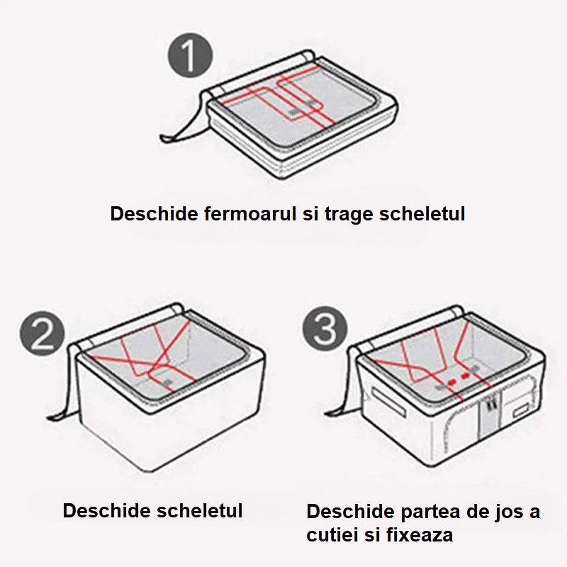 Se pliază pentru economisirea spațiului: Designul pliabil permite cutiei să se plieze atunci când nu este în utilizare, economisind astfel spațiu prețios. | Fara miros: Cutia de depozitare este concepută fără miros neplăcut, oferind un mediu proaspăt și plăcut. |
