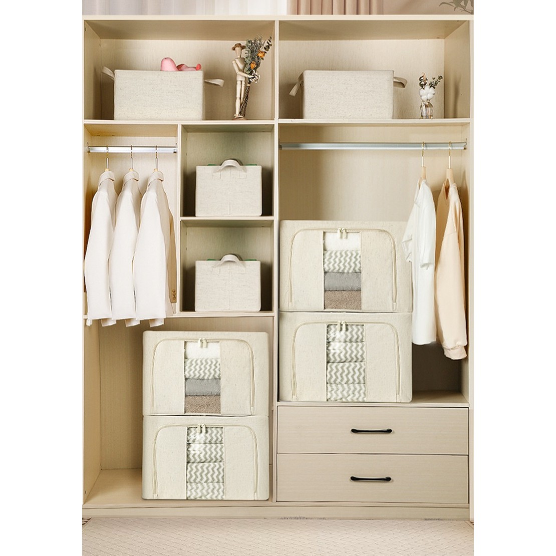 Utilizare versatilă: Potrivită pentru depozitarea tricourilor, puloverelor, pantalonilor, cuverturilor, jucăriilor, și multe altele.