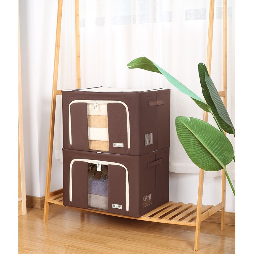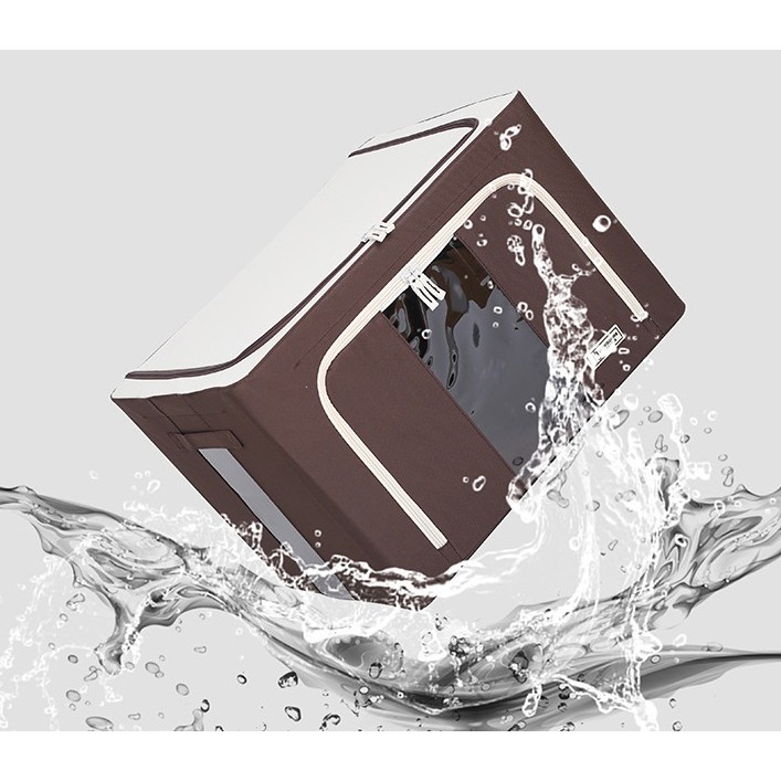 Cutie de Depozitare Pliabila, Flippy, Cu Fereastra si Fermoar Dublu, 66 L, Textil, 50x40x33 cm, Cadru Metalic, Impermeabila, Maro Premium