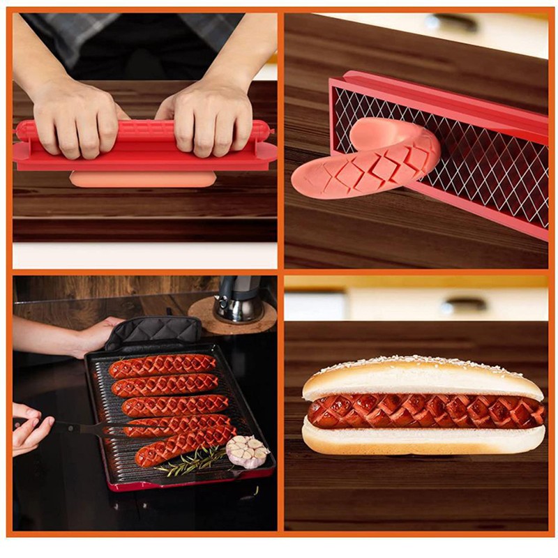 Eficiență: Produsul este conceput pentru a eficientiza procesul de tăiere și crestare a cârnaților și hot-dog-urilor