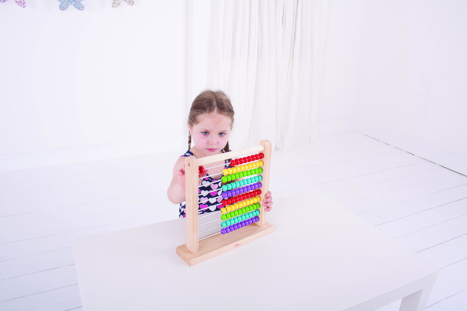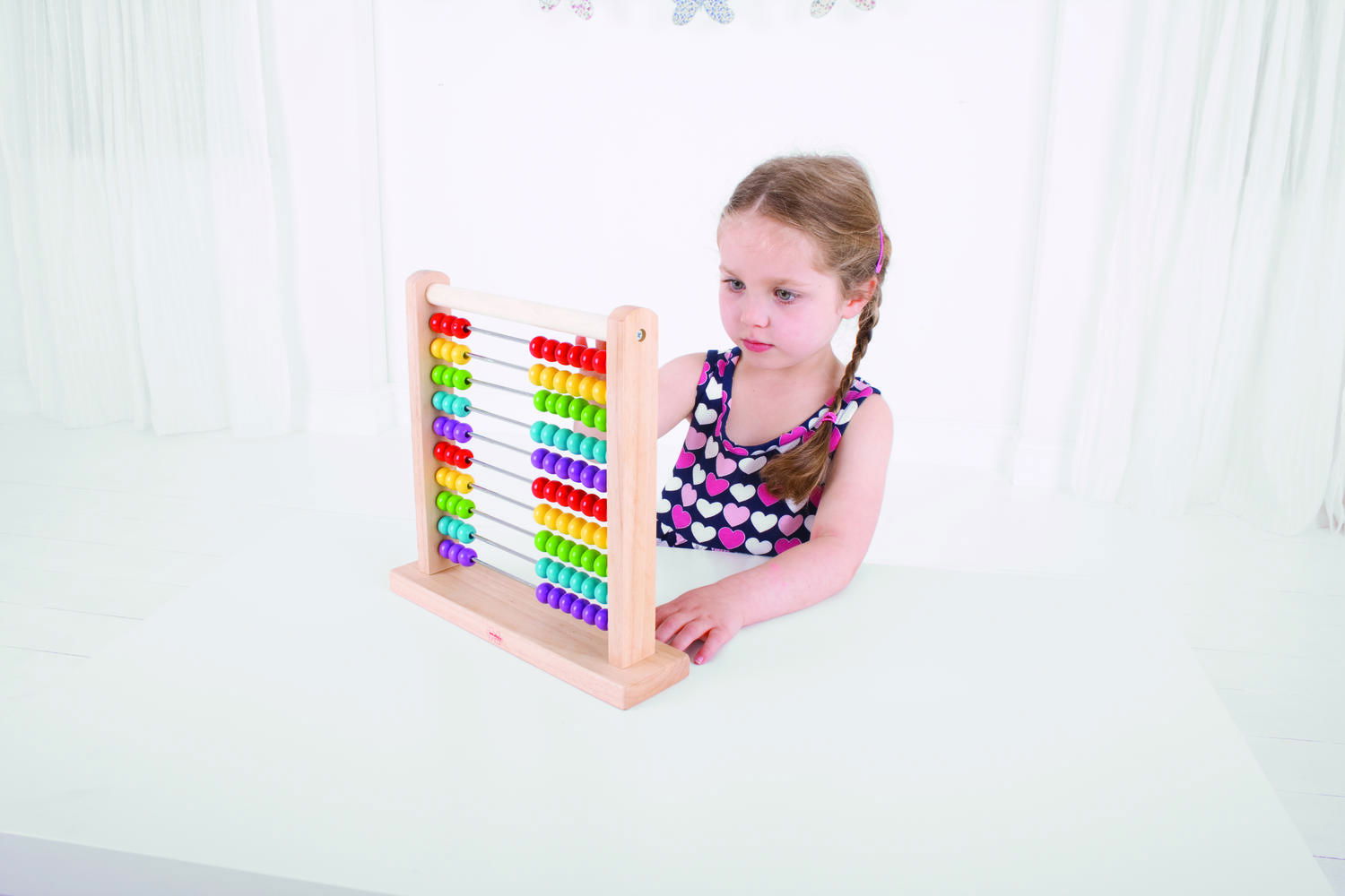 numaratoarea are 10 randuri a cate 10 bile colorate ce iti vor fi de mare ajutor la primele operatii matematice dar si la invatarea numerelor formate din zeci si unitati