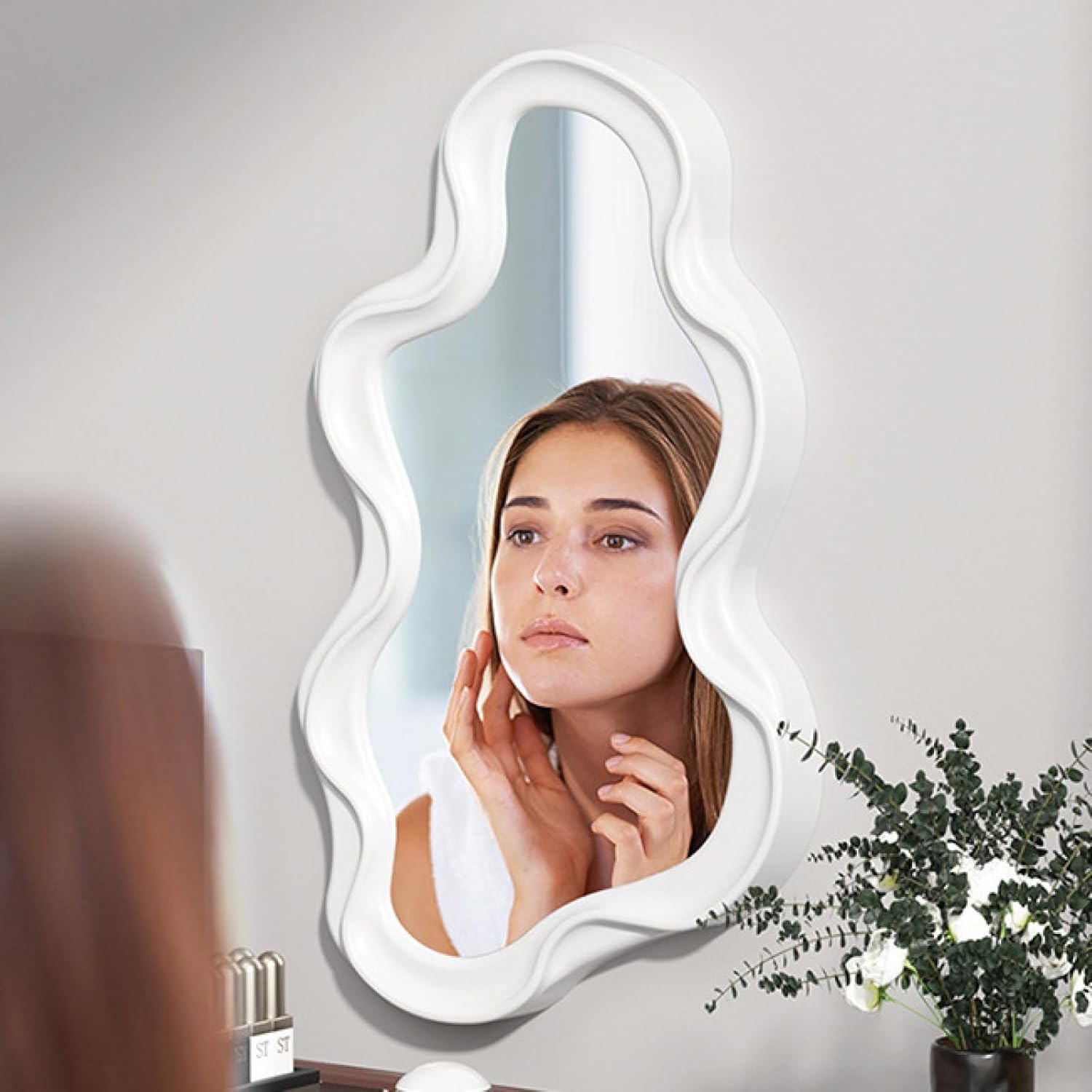 Oglindă de perete Flippy - Decorativă pentru baie, dormitor, sufragerie - Model Minimalist în Formă de Nor alb