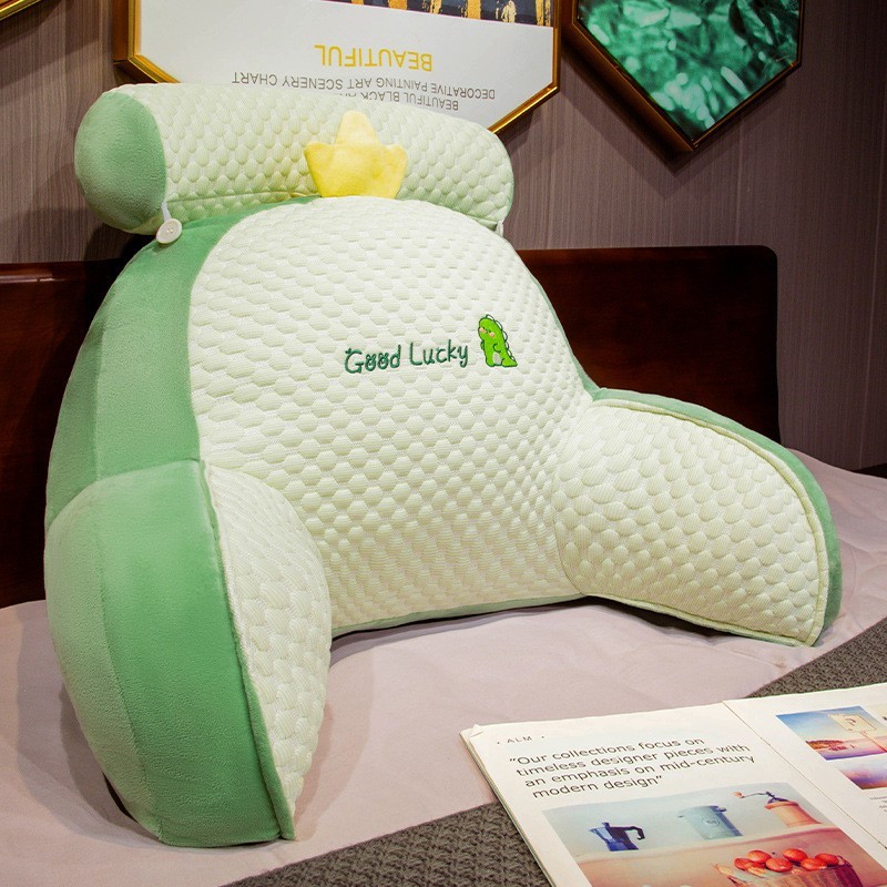 Perna Multifunctionala, Flippy, Spatar pentru Pat, Protectie Lombara, Marime Medie, 60 x 40 cm, din Plus, Model Dinozaur, Verde