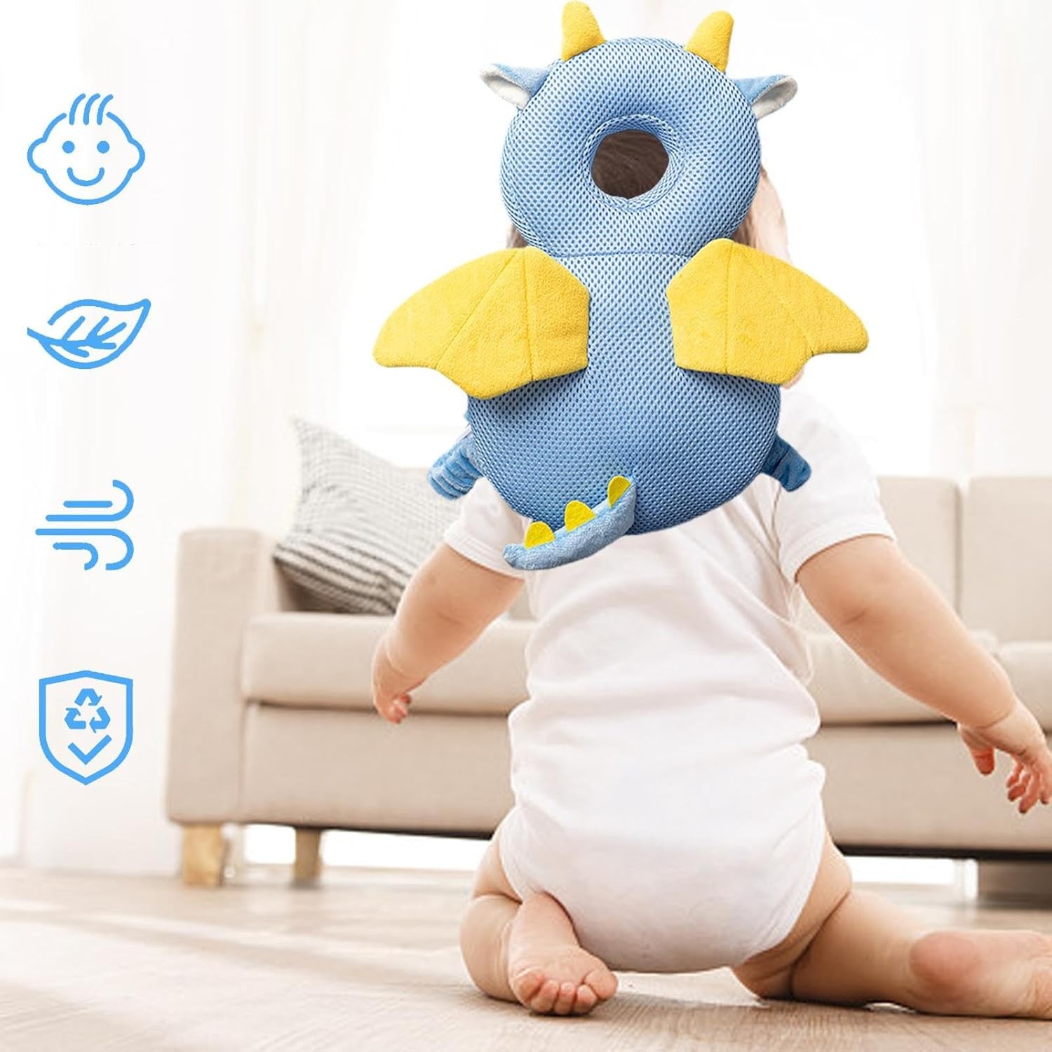 Siguranță în mișcare: Oferă protecție capului bebelușului în timpul căzăturilor accidentale.