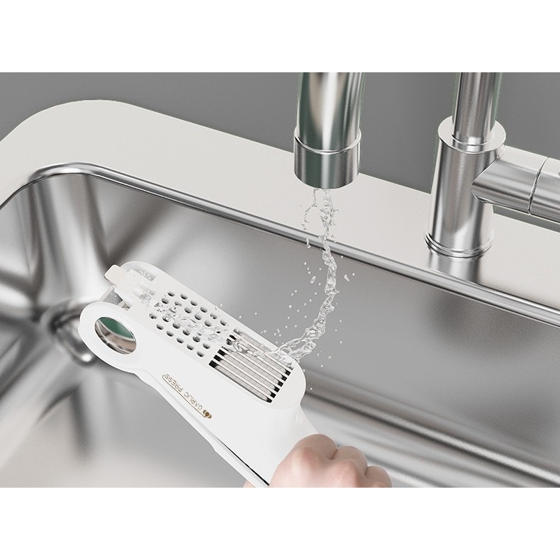 Un singur instrument pentru multiple nevoi în bucătărie! Cu un design inovator, Presa Multifuncțională Flippy 4 în 1 combină funcționalitățile de presare, feliere, desfacere și curățare într-un singur produs compact și eficient.