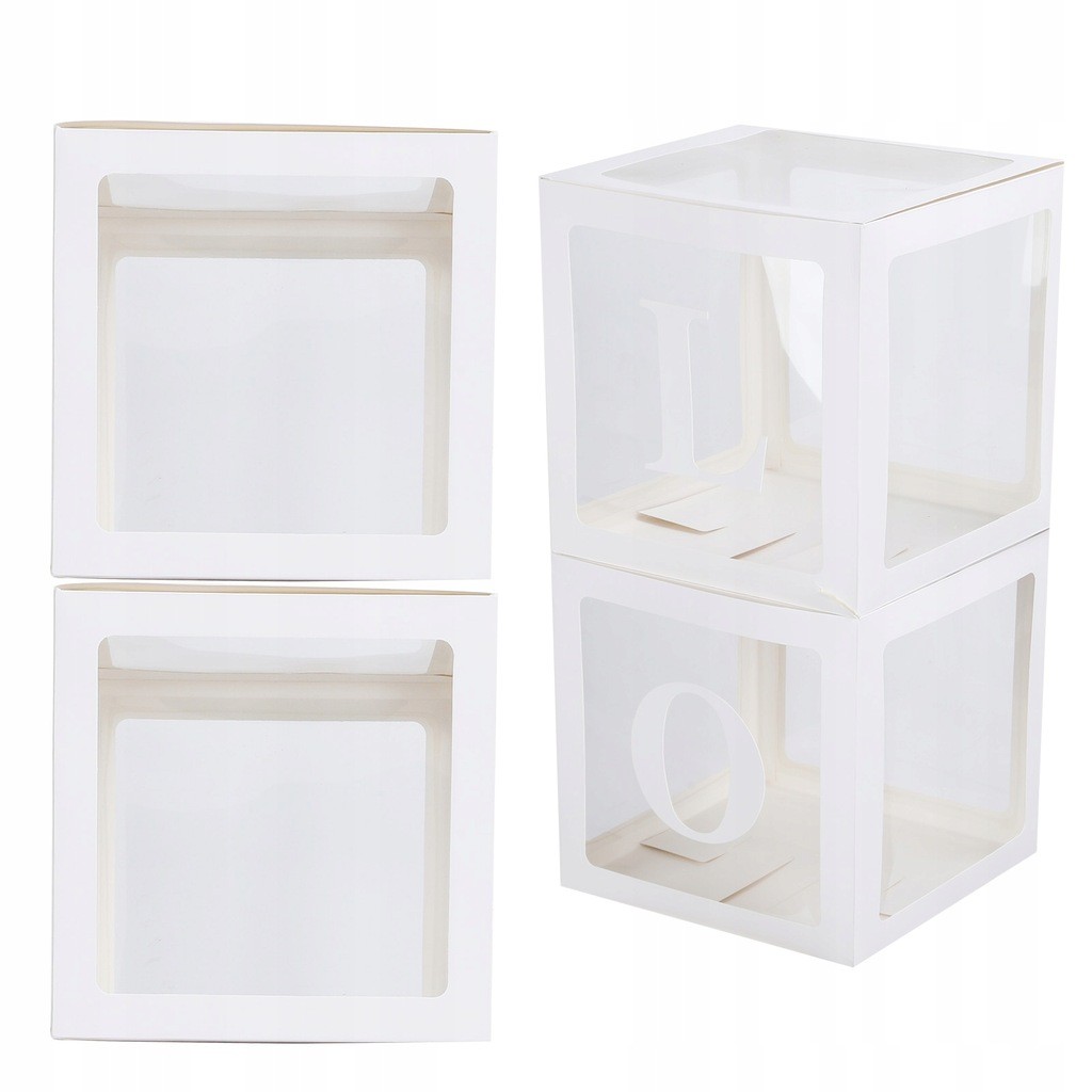 Set 4 cutii pentru baloane - Transparente Contur Alb - 30 x 30 cm