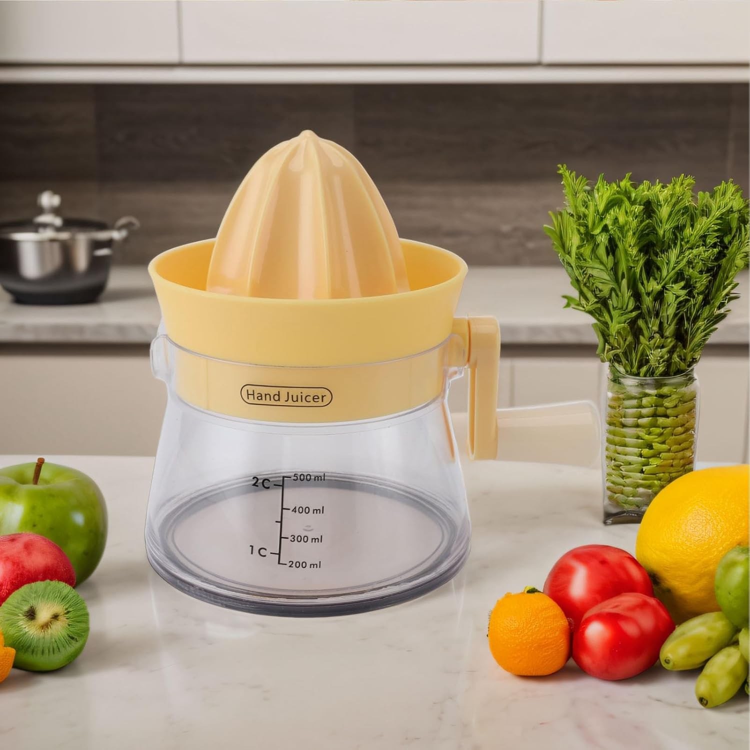 Gata cu sucurile din comerț pline de conservanți! Alegeți storcătorul de citrice manual Flippy și savurați prospețimea într-un mod simplu și eficient. Adăugați o notă de revitalizare în fiecare zi și experimentați gustul autentic al fructelor!