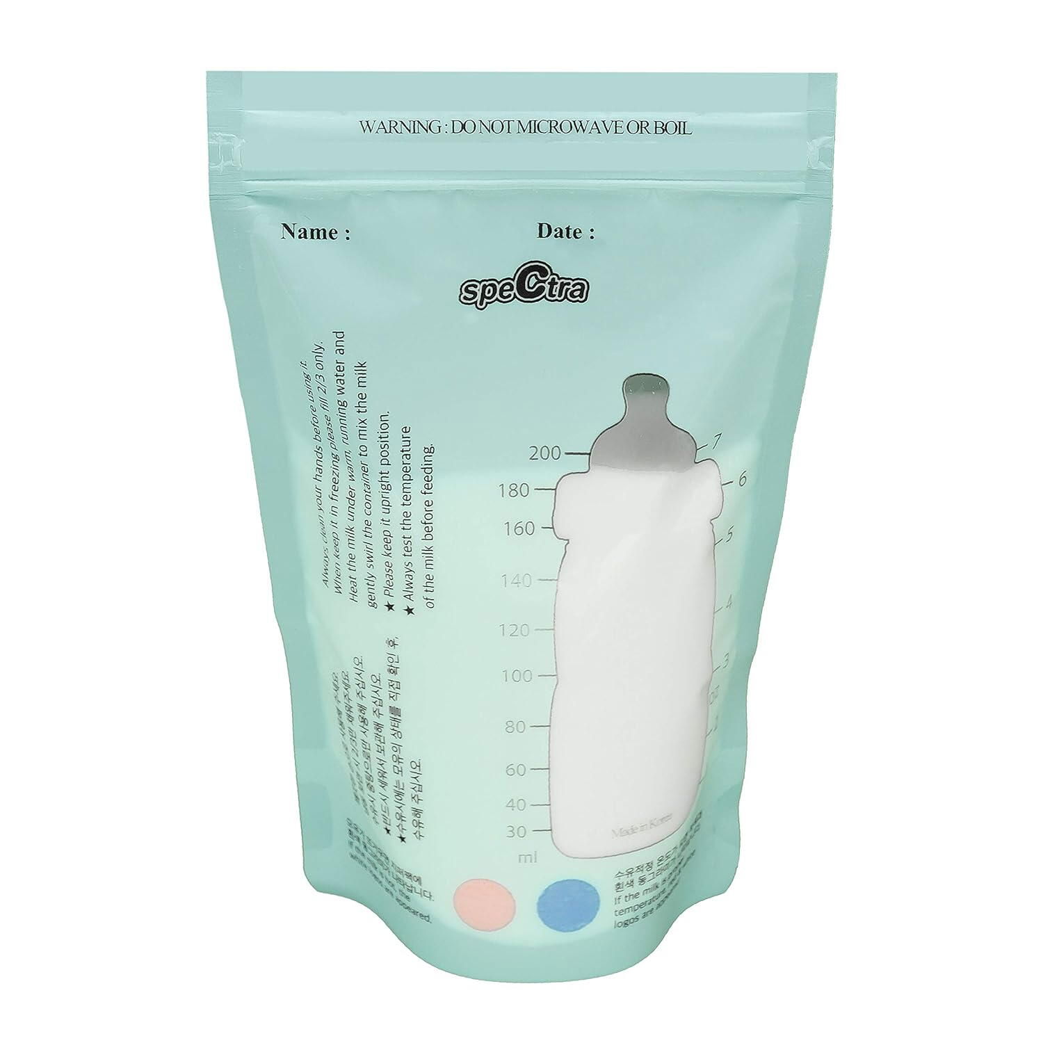 fiecare punga are o capacitate adecvata pentru stocarea unei cantitati semnificative de lapte matern