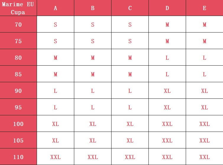Atentie! Pentru alegerea corecta a dimensiunii sutienului va rugam sa consultati tabelul din galeria foto a produsului