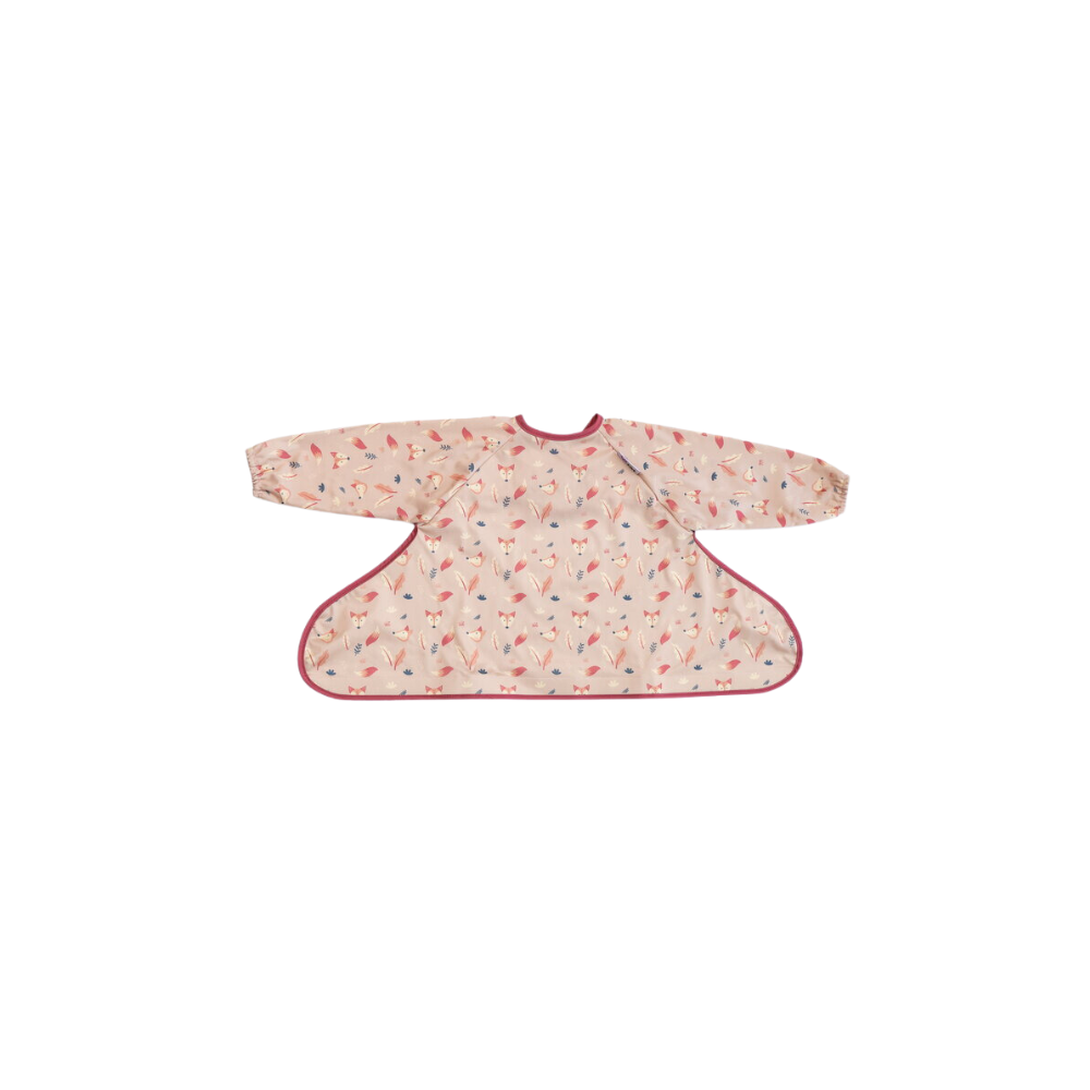 Baveta moderna cu maneci lungi, cu design vesel cu vulpite, extrem de utila pentru a proteja hainutele copilasului atunci cand mananca sau cand se joaca. Se poate utiliza ca atare sau daca doriti o baveta de schimb pentru kit-urile pentru hranire Tidy Tot.