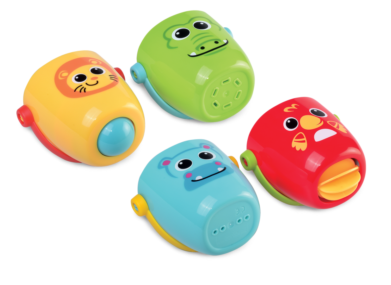 fiecare galetusa este decorata cu un animalut simpatic si prietenos: leu, crocodil, pasare si hipopotam – personaje vesele care il vor insoti pe cel mic in fiecare strop de joaca
