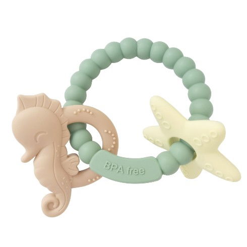 Jucărie Dentiție Bebeluși, Flippy, Tip Brățară, Model Căluț și Stea de Mare, +3 luni, din Silicon, fără BPA, 8.1 x 8.1 x 1.2 cm