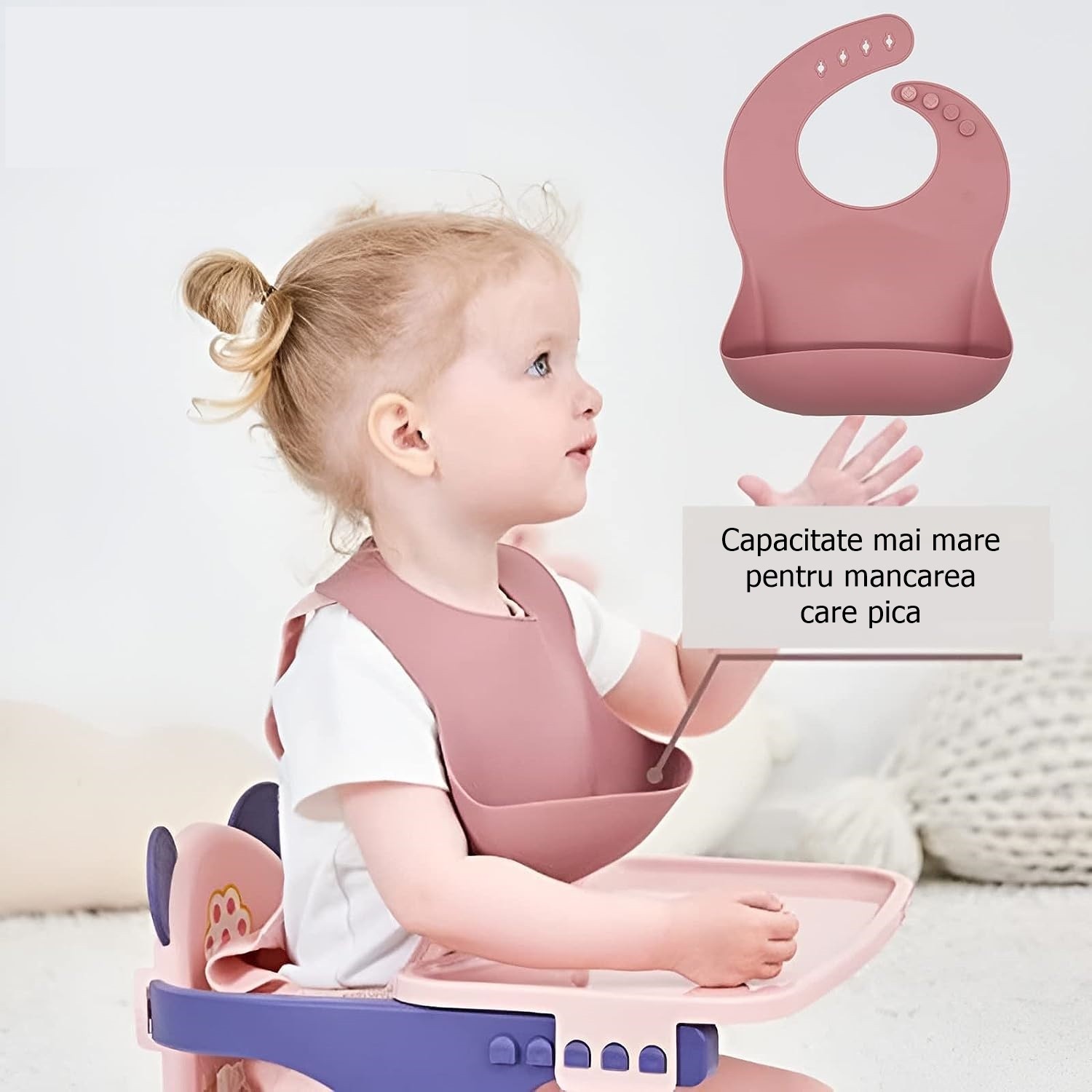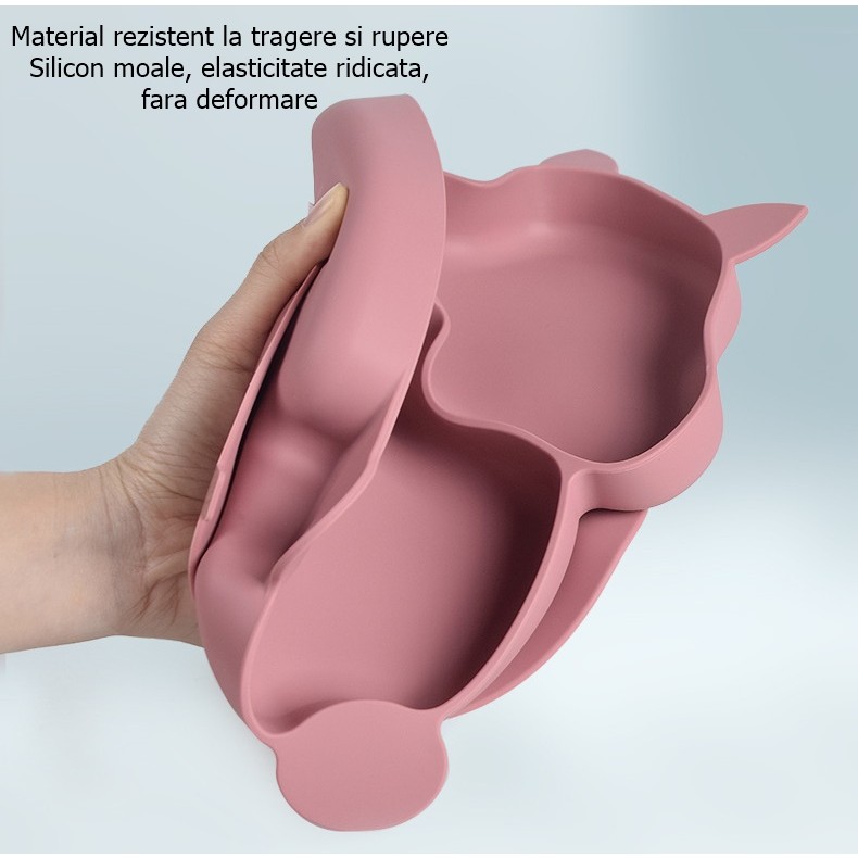 Design inovator pentru autonomie: Setul include un bol și o farfurie compartimentată cu ventuze puternice, care se fixează ferm pe masă sau pe tavă, prevenind astfel vărsarea accidentala a hranei. Acest lucru încurajează dezvoltarea abilităților de auto-alimentare ale copiilor, permițându-le să exploreze texturile și aromele hranei în mod independent și fără riscul de dezordine majoră.