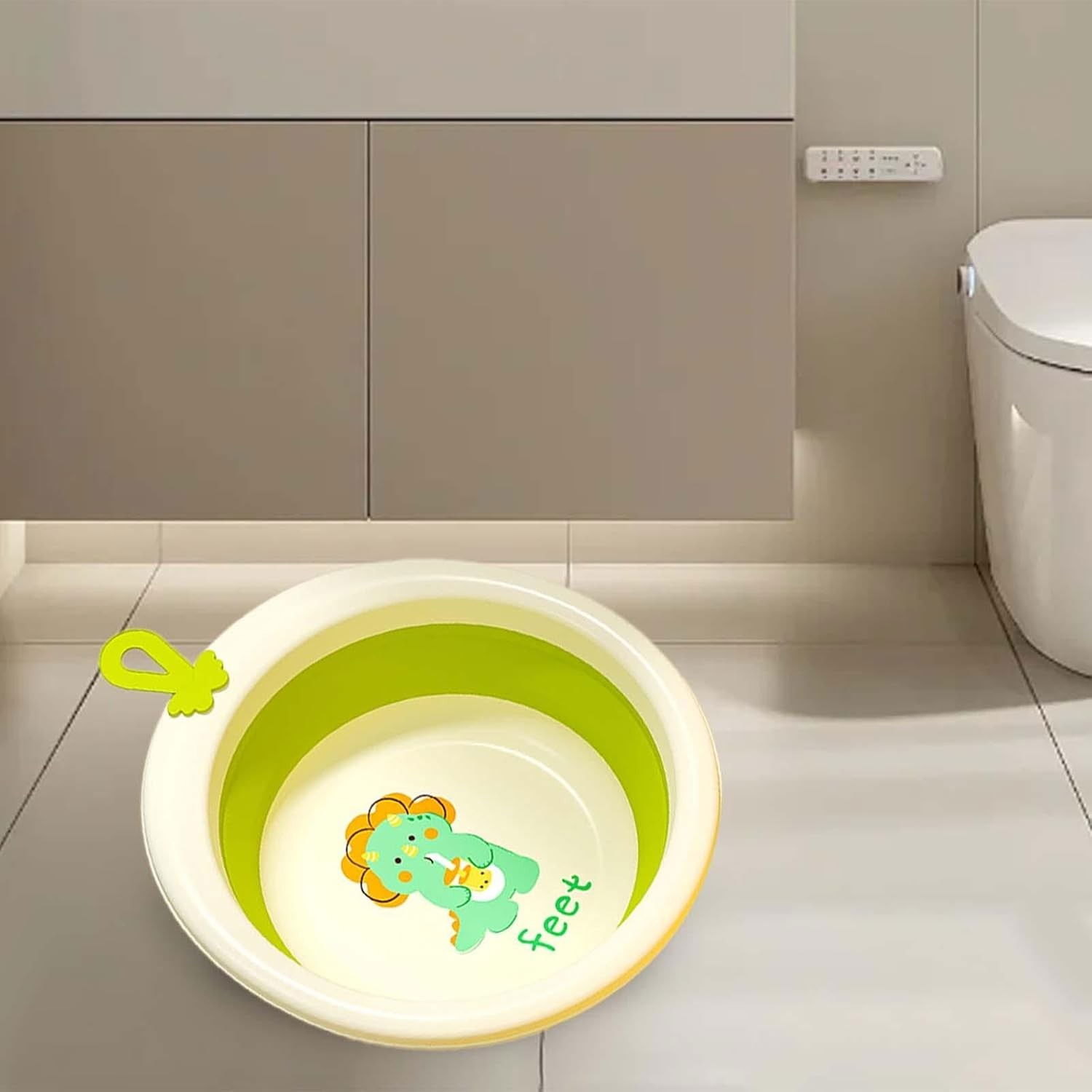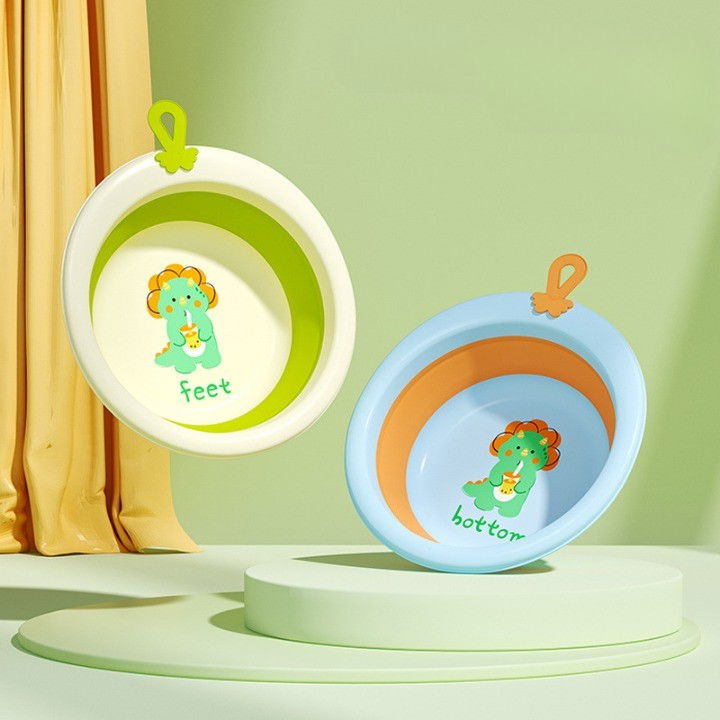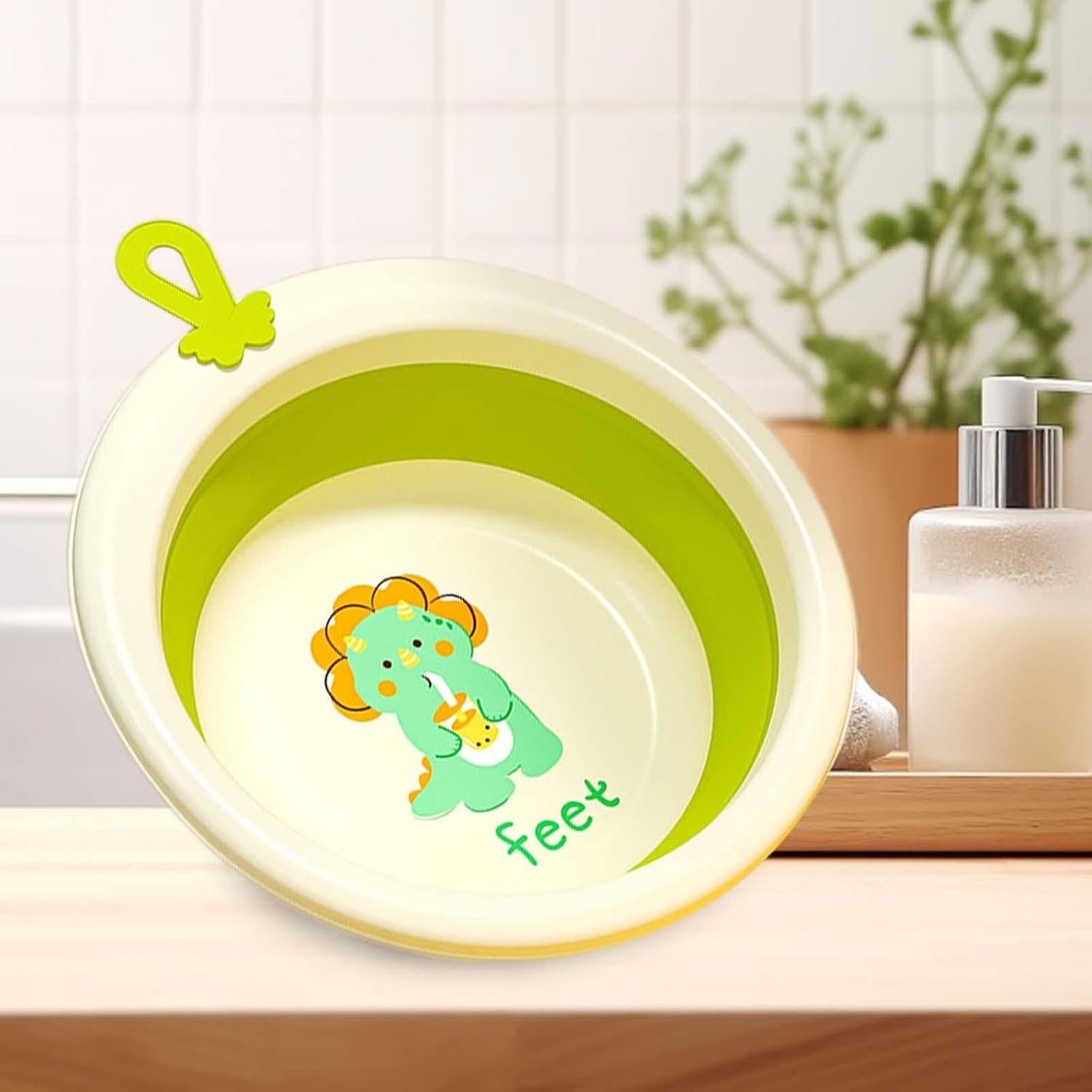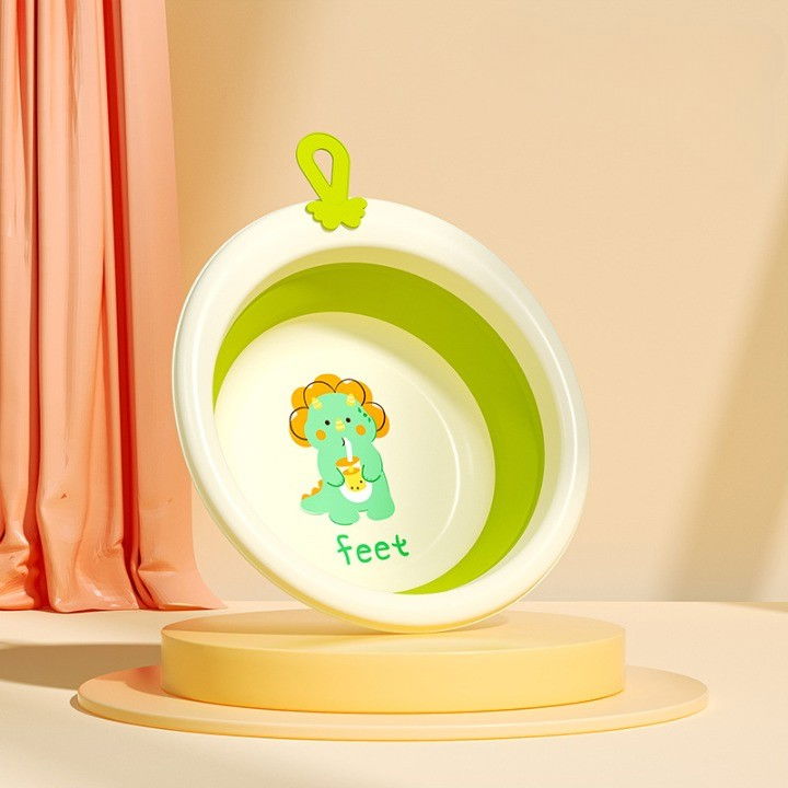 Cada Pliabila pentru Baie pentru Copii, Flippy, Cadita pentru Bebelusi, Model Rotund cu Dinozaur, Verde, 30x30x3.7 cm, 4L