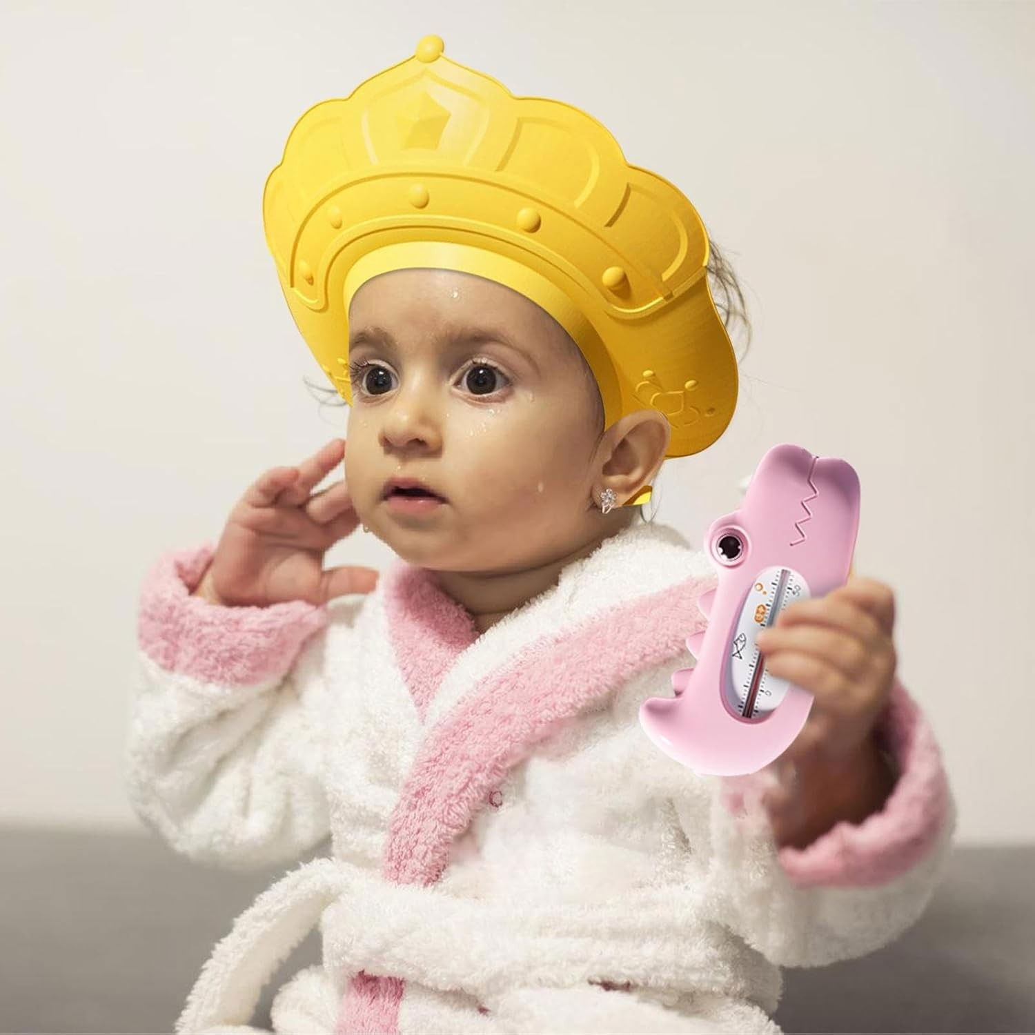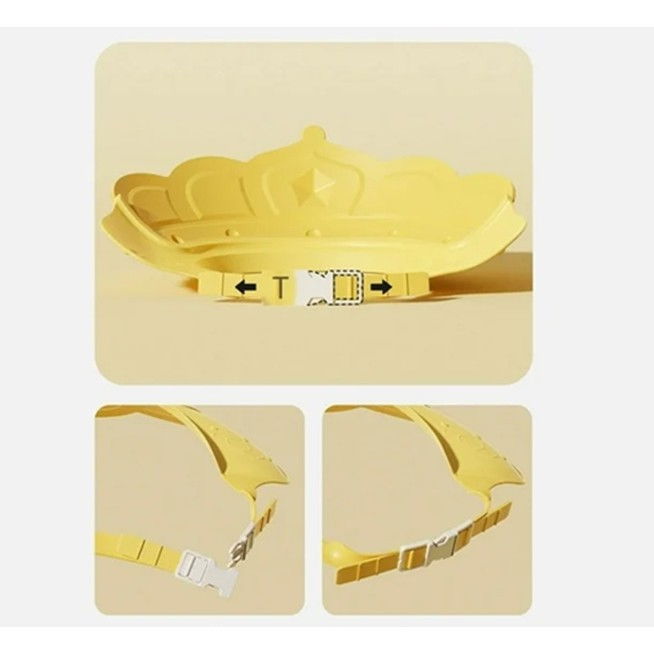 Casca de Dus, Flippy, Previne Scurgerea Apei si Samponului pe Fata, 0-12 Ani, Ajustabila, din TPE+PP, 20 x 23 cm, Model Coroana, Galben