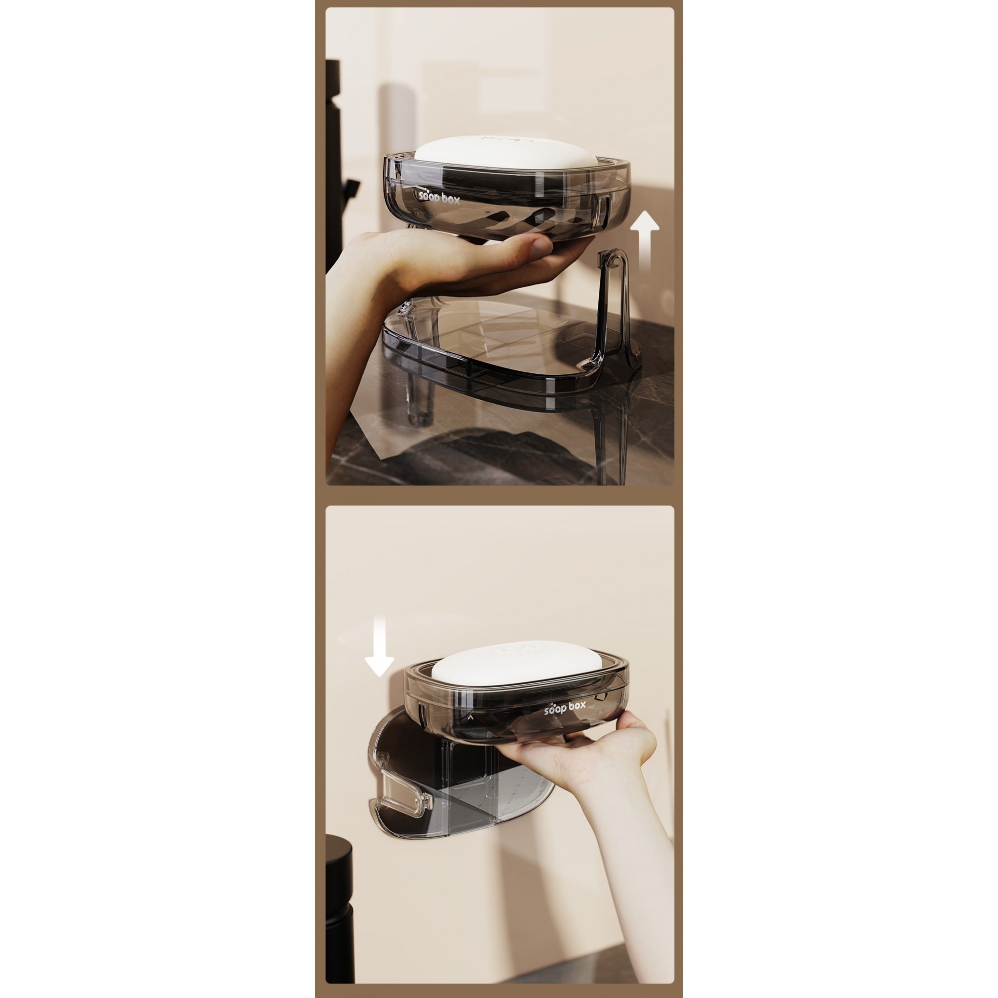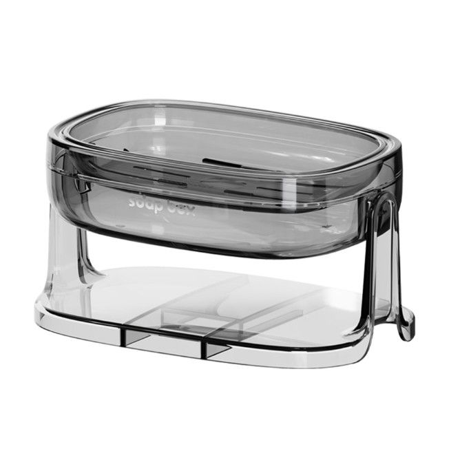 Savonieră cu Suport 2 în 1, Flippy, pentru Perete sau Blat, PET, Scurgere Optimă, Gri
