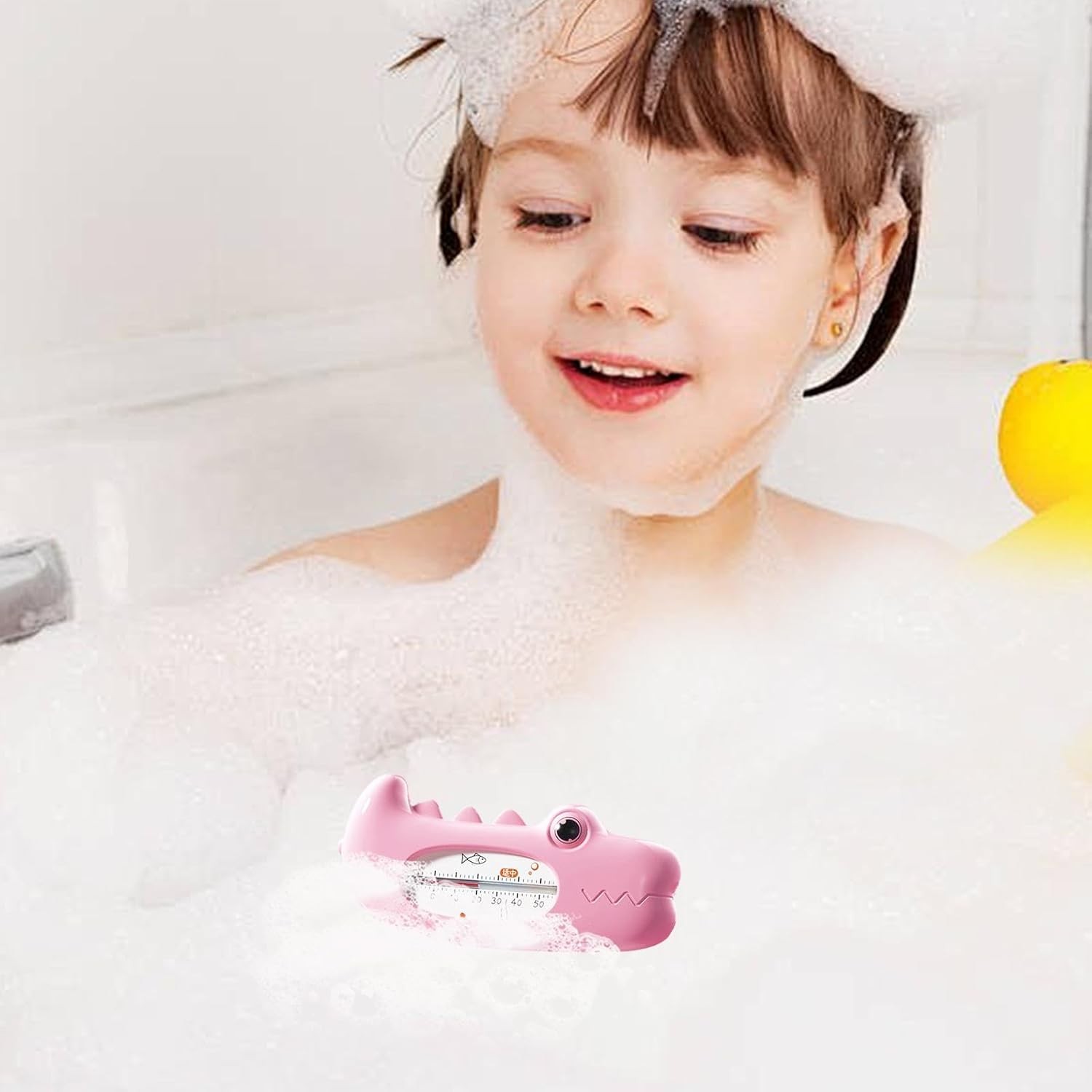 Termometru pentru Baie, Flippy, Plutitor, Rezistent la apa, Multifunctional, Model Crocodil, 2.7x6.5x3.7 cm, Roz