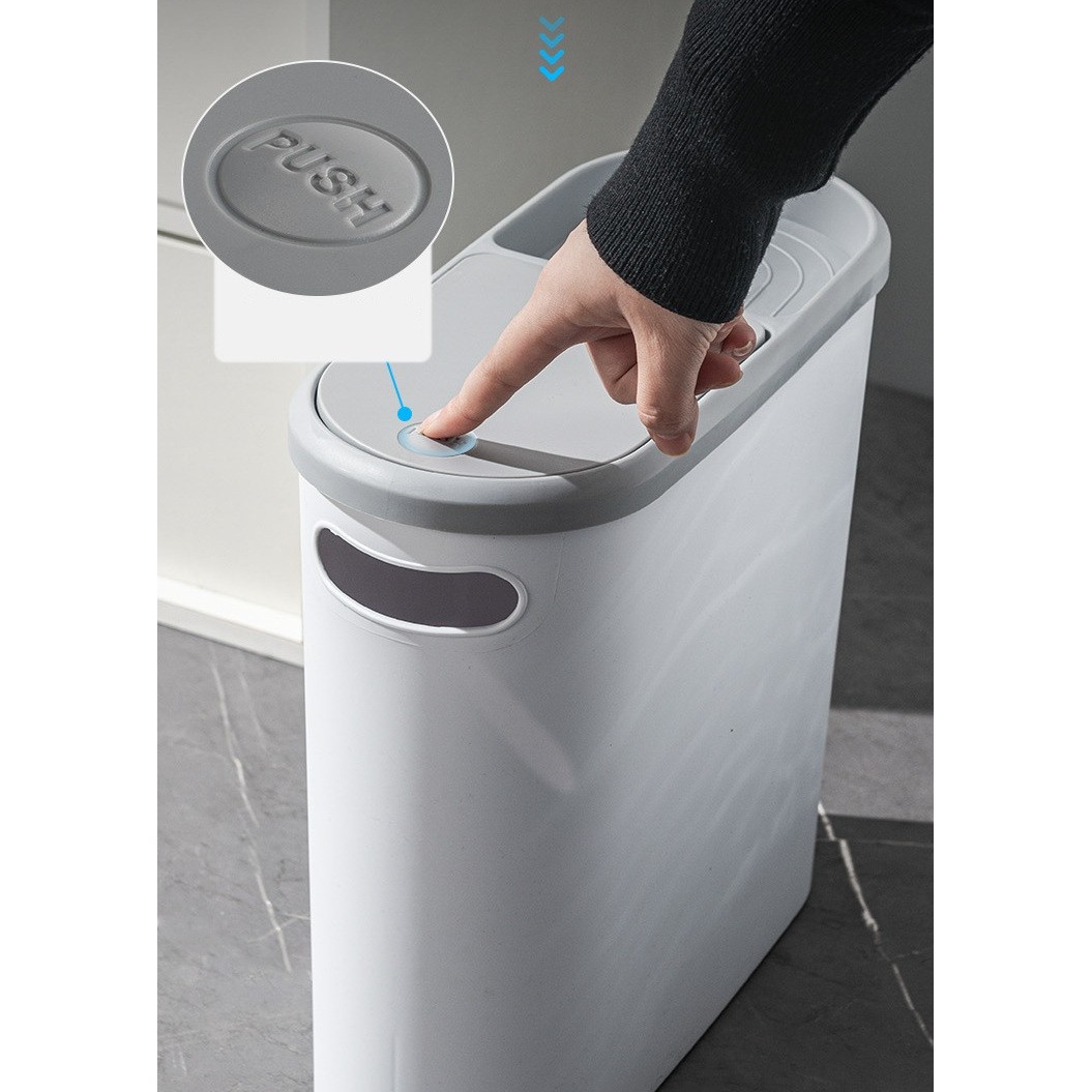Optimizează spațiul din baie sau bucătărie cu Coșul de gunoi Flippy, cu design oval modern, inspirat din stilul japonez. Compact și îngust, este ideal pentru spații restrânse, fiind ușor de amplasat lângă toaletă, chiuvetă sau mobilier.