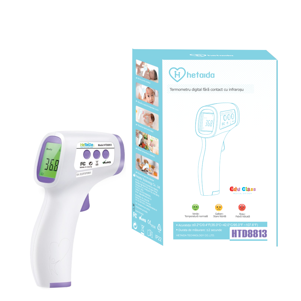 termometrul EduClass Medical HTD8813 are o serie de caracteristici care il fac un instrument igienic si usor de utilizat