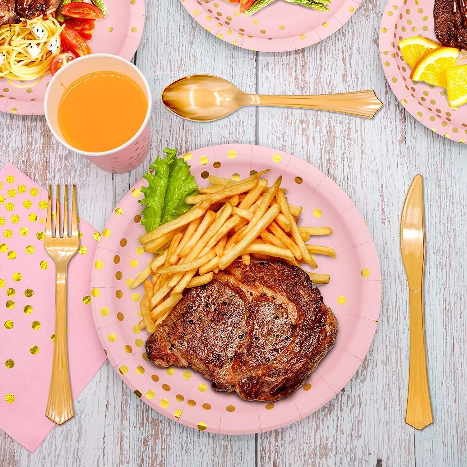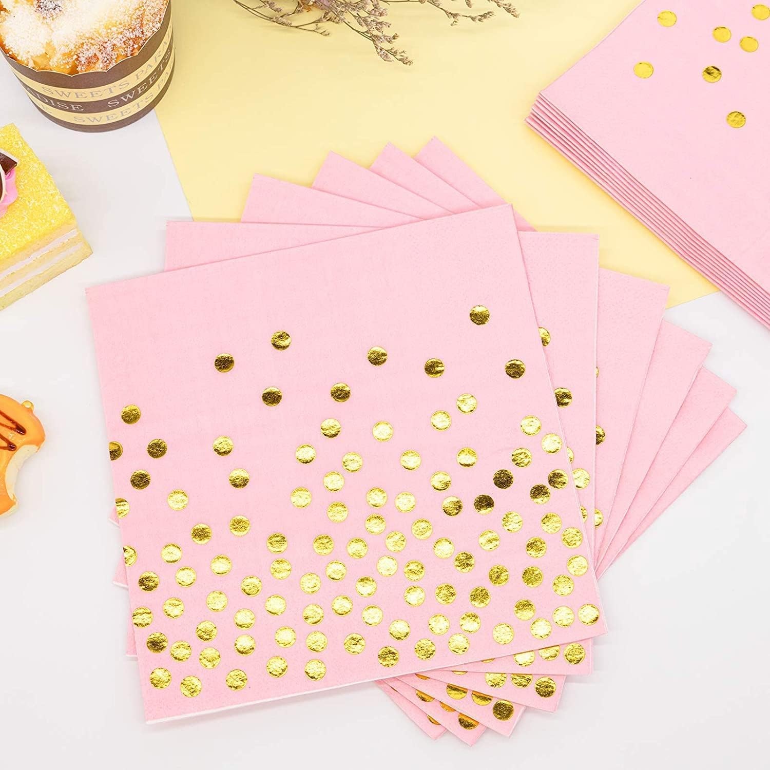 Set 20 de Servetele de Masa, Flippy, Imprimeu cu Buline Aurii, din Hartie, 17 x 17 cm, Roz