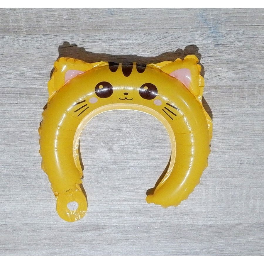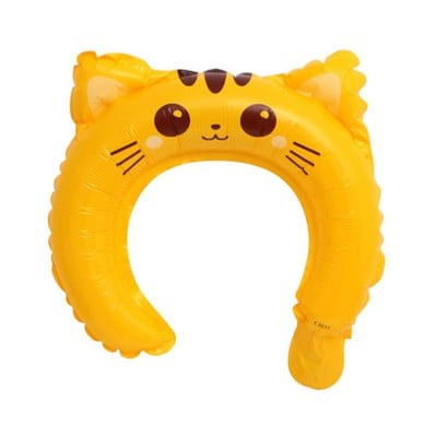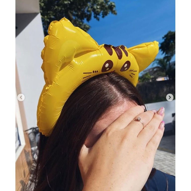 Balon din Folie Metalizata, Flippy, Tip Coronita cu Urechi, Model Pisicuta, Ambalaj Individual, Pai Inclus, Umflare cu Aer sau Heliu, 24 x 29.5 cm, Galben