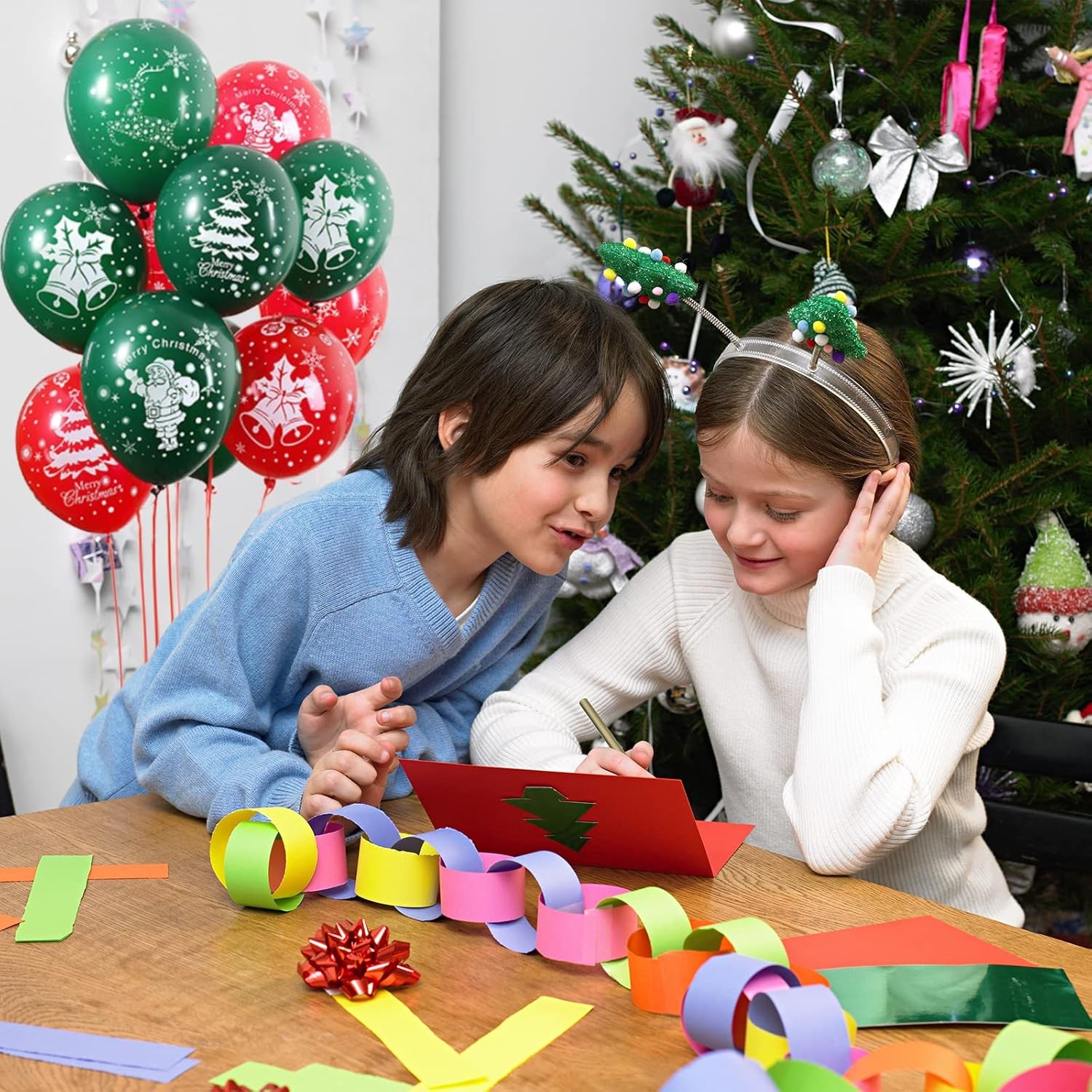 • Design festiv: Baloanele au imprimeuri specifice Crăciunului, cum ar fi brăduți, fulgi de zăpadă și textul "Merry Christmas", fiind perfecte pentru decorarea petrecerilor de sărbători.