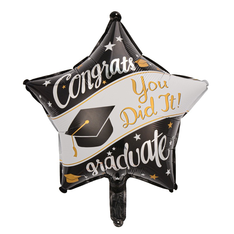 Set 2 Baloane din Folie Metalizata, Flippy, Figurine Stea 45 cm si Minge 63x53 xm, Model Absolvire, Ambalaj Individual, Pai Inclus, Umflare cu Aer sau Heliu, Multicolor