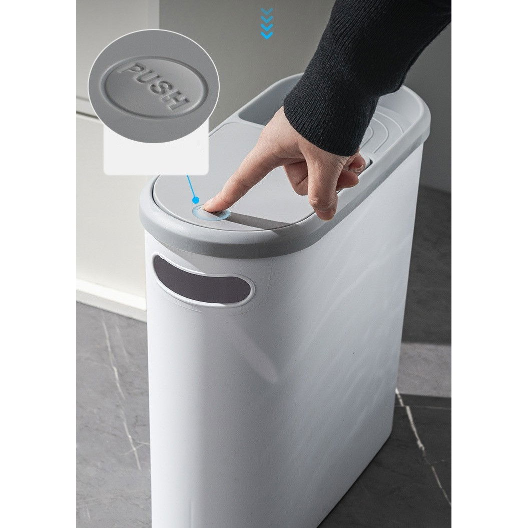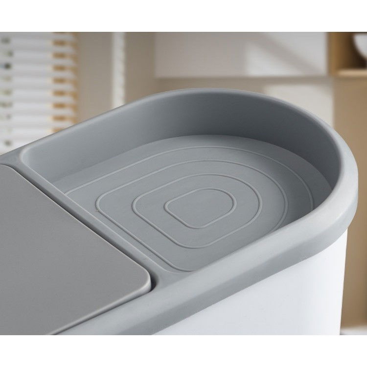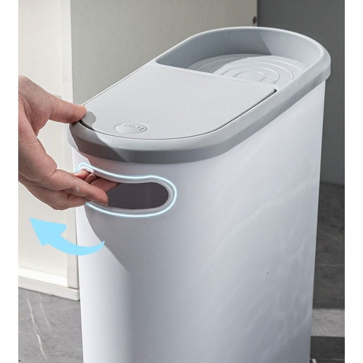 Optimizează spațiul din baie sau bucătărie cu Coșul de gunoi Flippy, cu design oval modern, inspirat din stilul japonez. Compact și îngust, este ideal pentru spații restrânse, fiind ușor de amplasat lângă toaletă, chiuvetă sau mobilier.