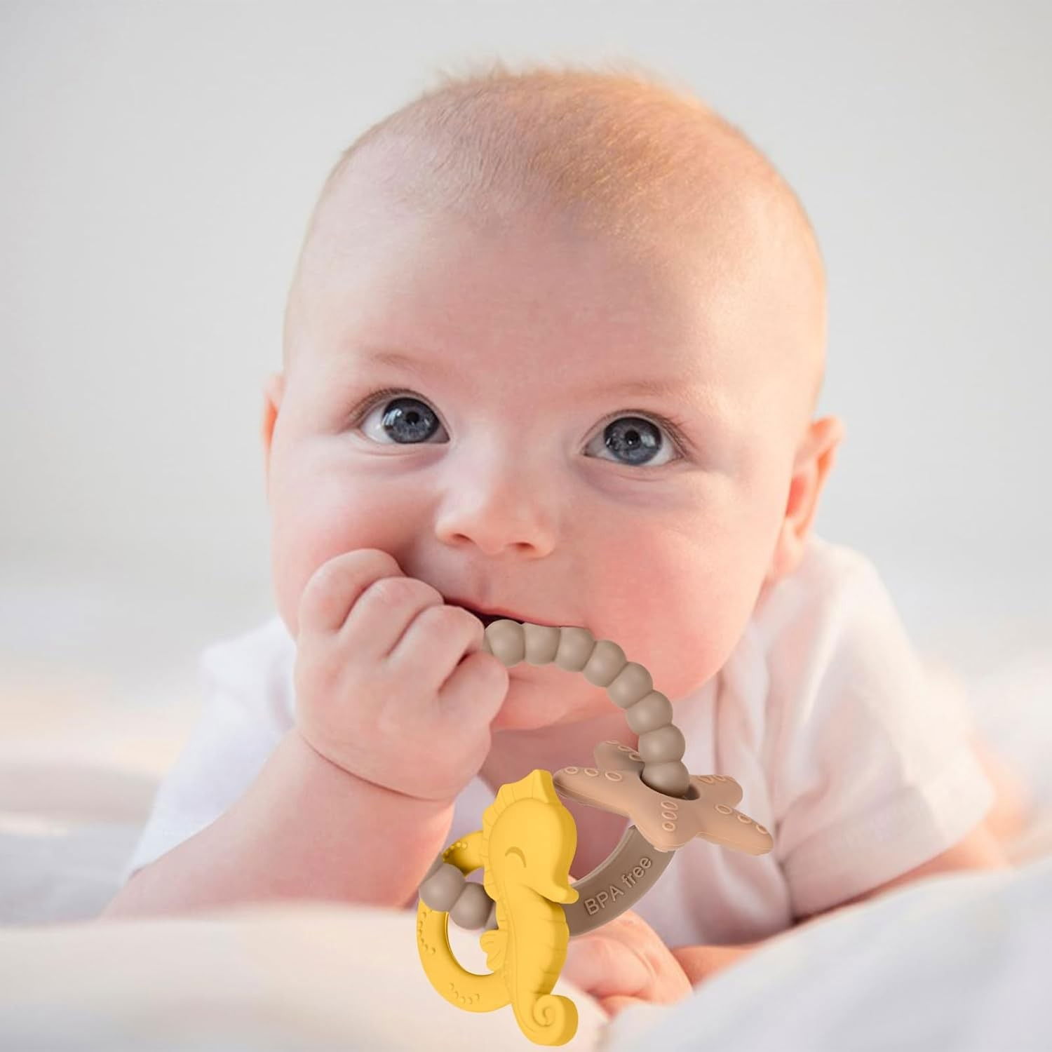 • Material sigur și moale: Siliconul fără BPA este non-toxic, ideal pentru a calma durerile dentare la bebeluși.