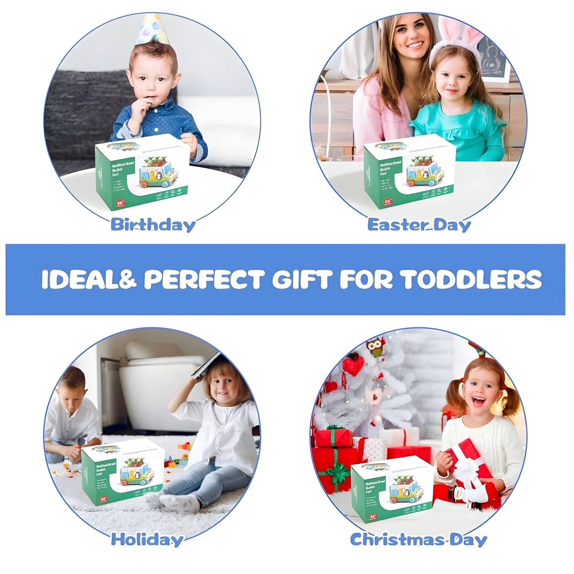 Activitățile sunt concepute pentru a sprijini dezvoltarea motricității fine, coordonarea mână-ochi, recunoașterea culorilor și formelor, atenția și răbdarea. Piesele sunt din lemn, cu margini netede și finisaje prietenoase cu cei mici, iar după joacă pot fi depozitate în interiorul mașinuței.