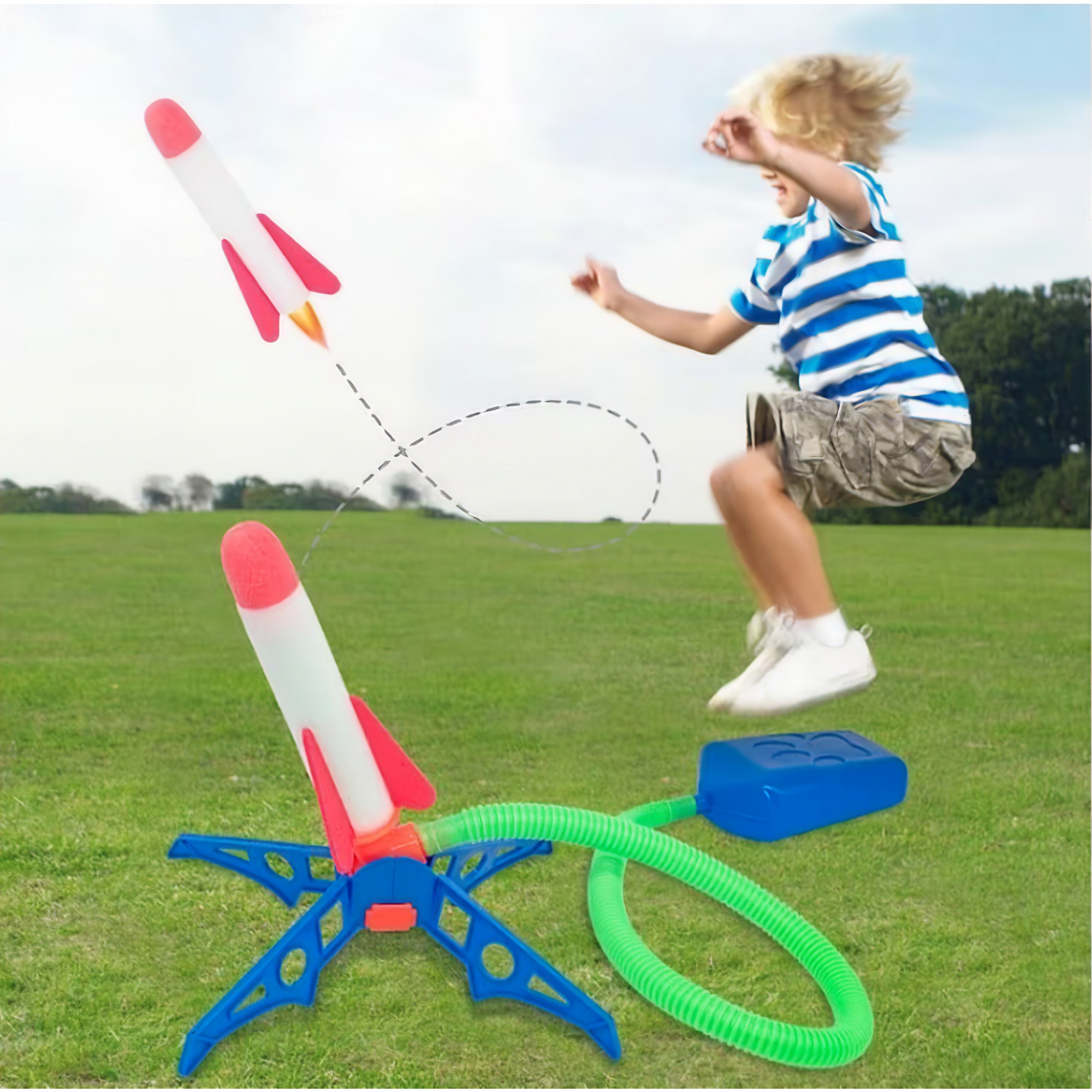 • UNA DINTRE CELE MAI ATRACTIVE JUCARII DE EXTERIOR - Atat fetele cat si baietii vor fi interesati sa se joace in aer liber cu acest lansator, si sa observe cat de sus poate ajunge. Lansator este dublu astfel ca doi copii, sau un copil si un parinte se pot juca in acelasi timp, si pot apasa pedala cat mai tare pentru ca racheta sa fie proiectata cat mai sus.