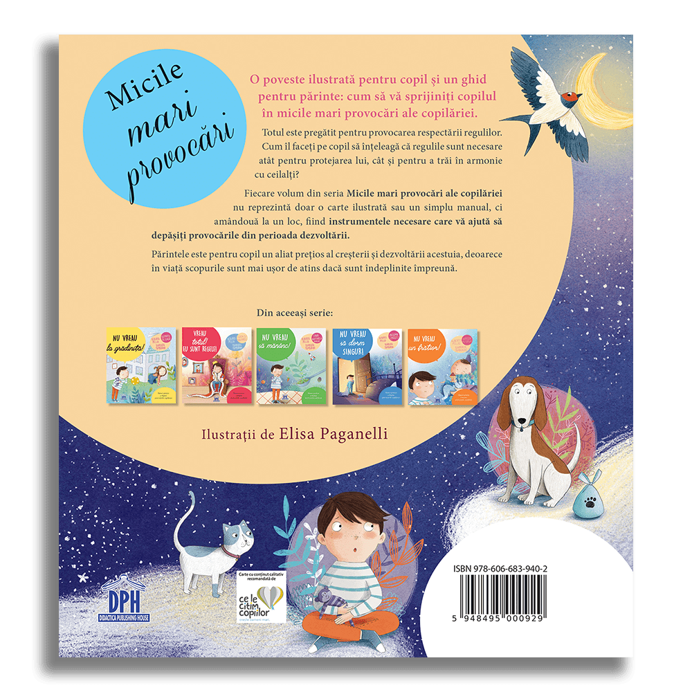 Fiecare volum din seria Micile mari provocari ale copilariei nu reprezinta doar o carte ilustrata sau un simplu manual, ci amandoua la un loc, fiind instrumentele necesare care va ajuta sa depasiti usor provocarile din perioada dezvoltarii.
