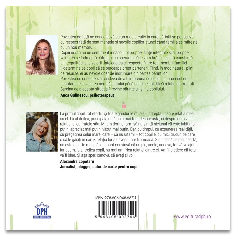 Povestea ne conecteaza cu ideea de a fi impreuna cu copilul in procesul de adaptare de la venirea nou-nascutului pana cand se solidifica relatia dintre frati. Sarcina de a adapta situatia ii revine parintelui, si nu copilului