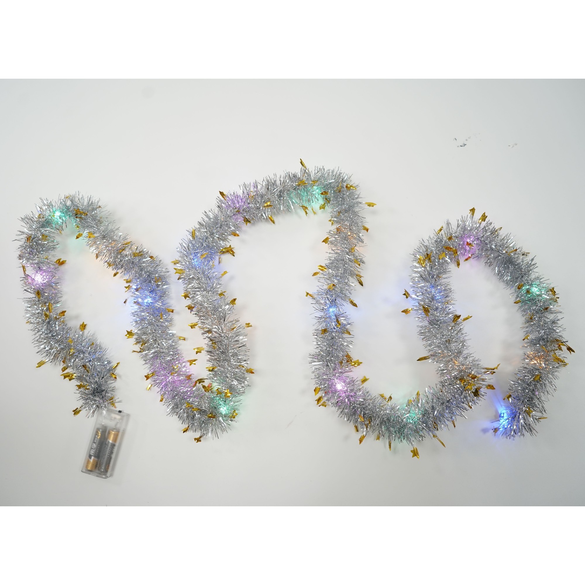 Beteala Craciun cu LED, Aurie, model cu stelute, 2 m x 5 cm, PVC, Sir, Artificiala, Flippy