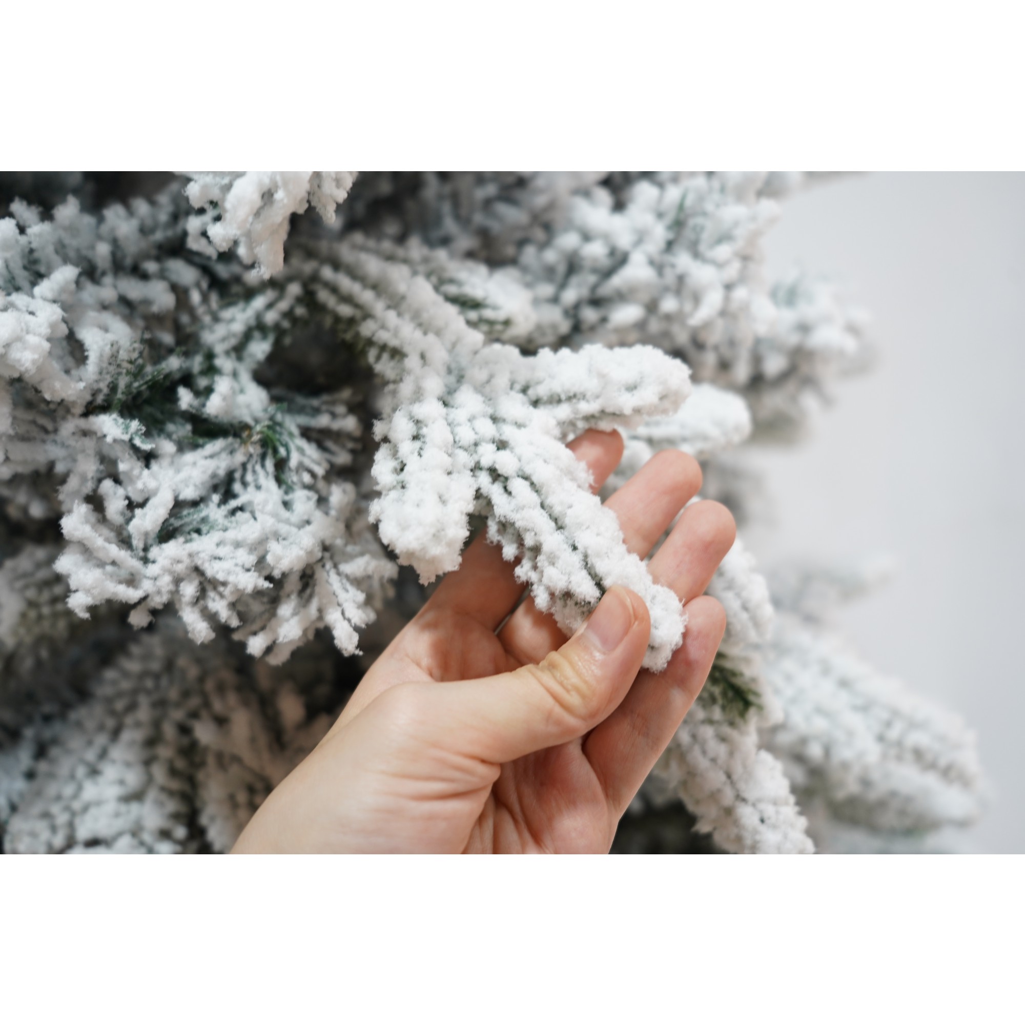 Brad caracterizat prin simplitatea și eleganța sa care asigura cea mai buna combinatie pret-calitate, pentru perete/colt, Flippy, culoare verde, pulverizat alb-tip zapada, diametrul inferior 98cm, marimea 180cm