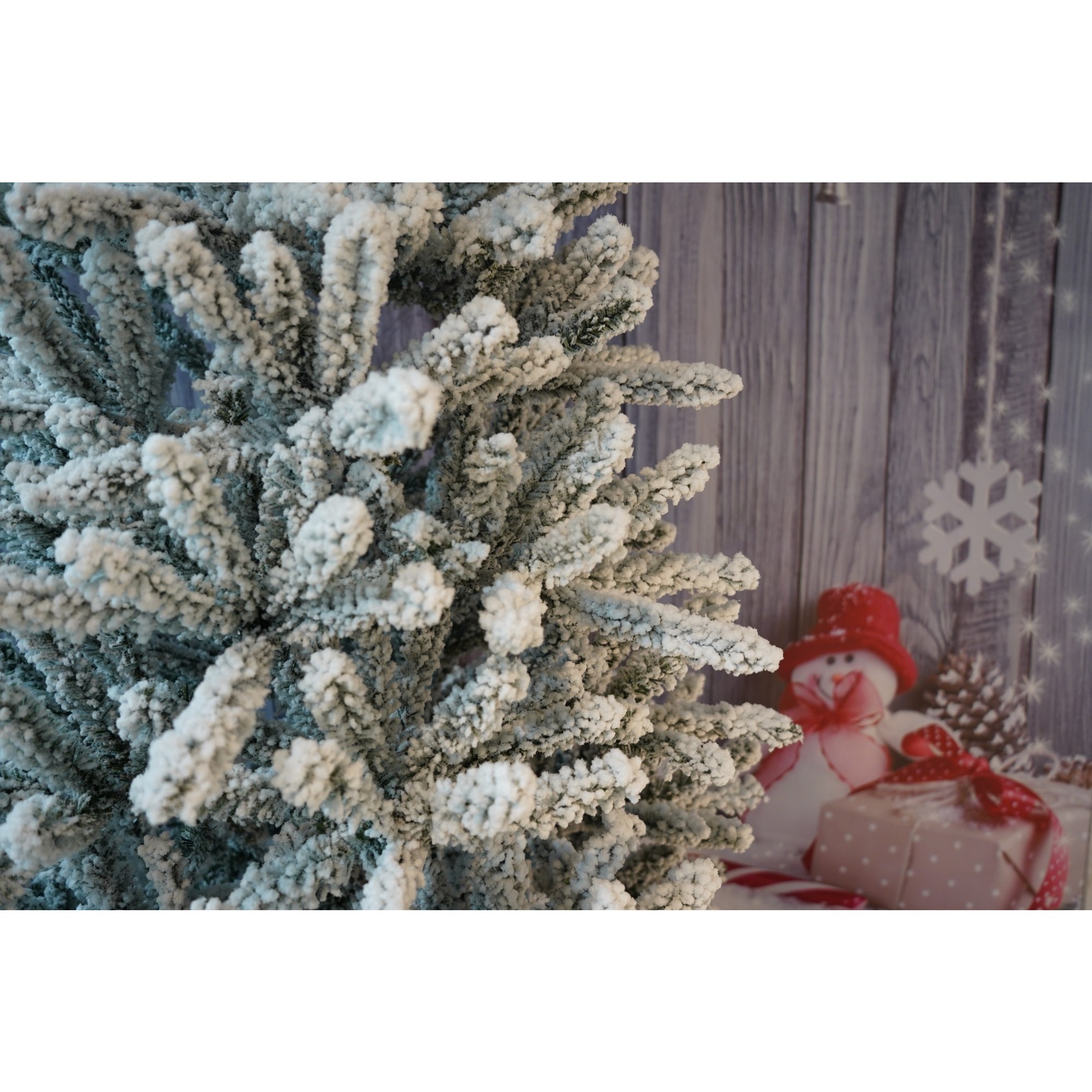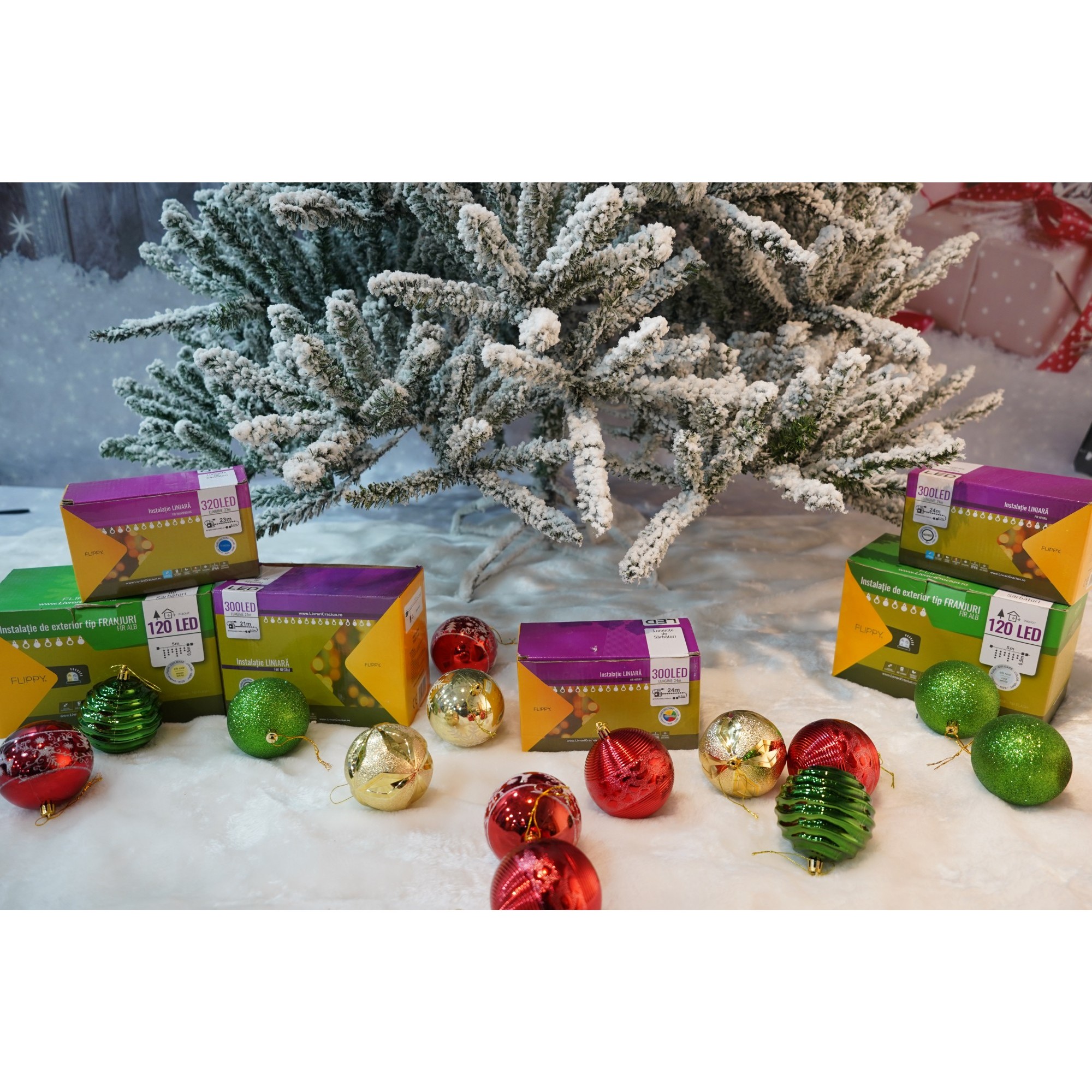 Brad caracterizat prin simplitatea și eleganța sa care asigura cea mai buna combinatie pret-calitate, pentru perete/colt, Flippy, culoare verde, pulverizat alb-tip zapada, diametrul inferior 130cm, marimea 210cm