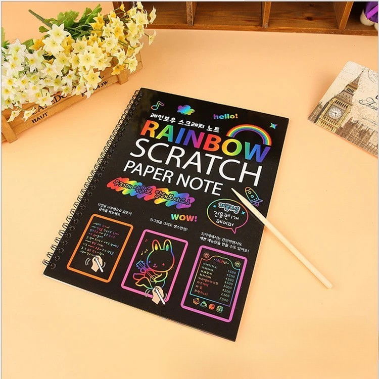 Caietul cu foi de hârtie de răzuit Flippy este alegerea ideală pentru cei mici și pasionații de artă, oferind o experiență creativă unică. Fiecare pagină ascunde un fundal curcubeu vibrant, care se dezvăluie pe măsură ce desenezi sau scrii cu stiloul inclus. Perfect pentru activități artistice, relaxare și dezvoltarea imaginației.