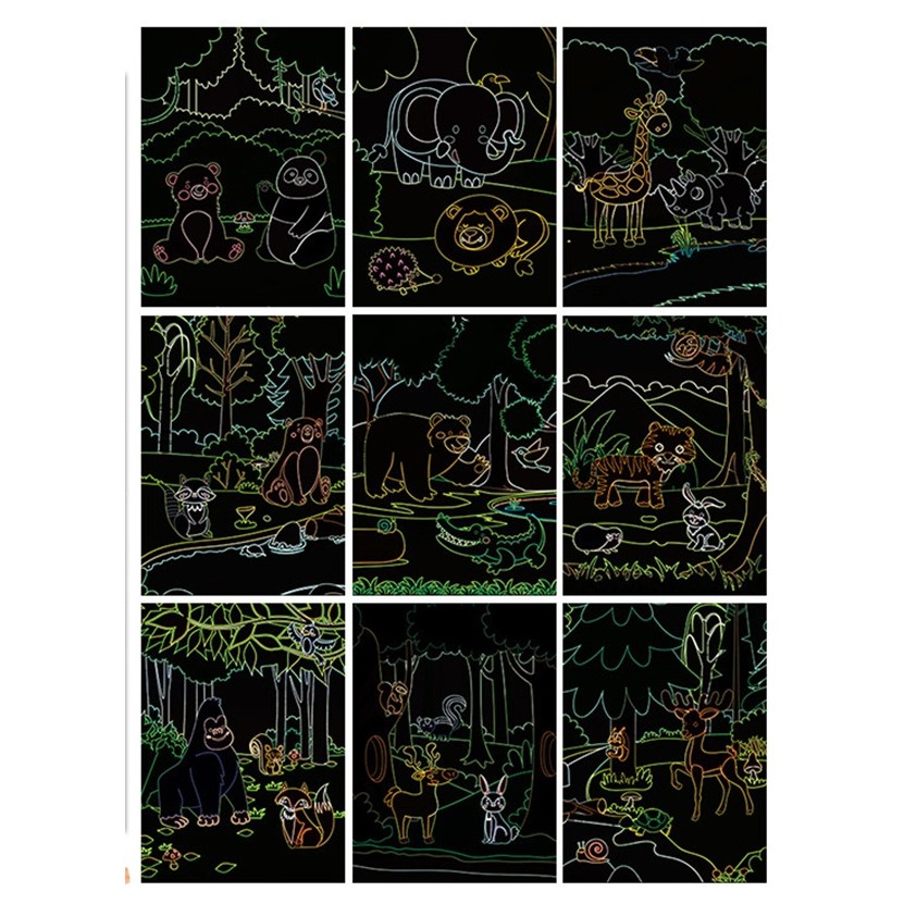 Set 9 Planse Razuibile, Flippy, Scratch ArtCards, +3 Ani, de Razuit si de Colorat, 19 x 14 cm, Model ZOO, Multicolor