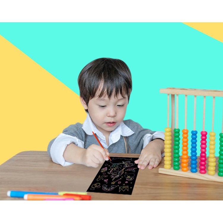 Acest set inovator de planșe Scratch ArtCards oferă o alternativă captivantă la pictura tradițională, fără a folosi vopsele sau pensule. Doar răzuiți și lăsați culorile să apară, creând modele unice și pline de viață. O activitate perfectă pentru timpul liber, care îi ajută pe copii să își exprime creativitatea și să își dezvolte răbdarea.
