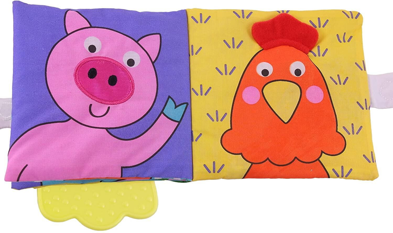 Fabricata din materiale moi si sigure, aceasta carticica este perfecta pentru a calma gingiile celui mic si pentru a-i capta atentia cu paginile viu colorate si materialul fosnitor
