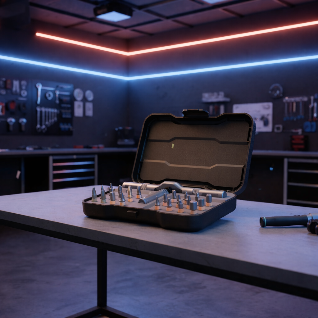Kitul include 22 capete interschimbabile si accesorii dedicate lucrarilor de precizie. Varietatea capetelor permite utilizarea pe mai multe tipuri de suruburi, fiind potrivit atat pentru uz casnic, cat si pentru interventii tehnice usoare.