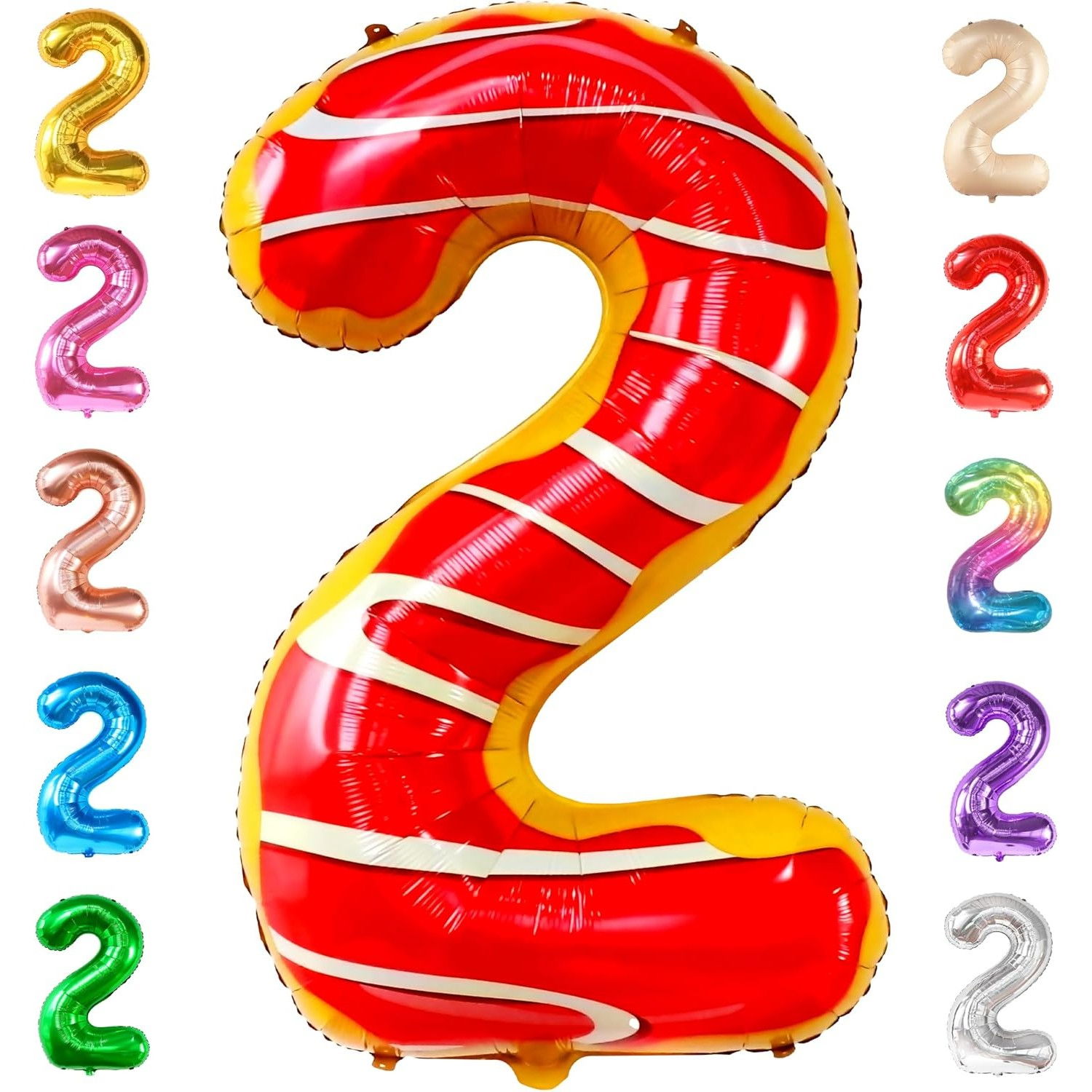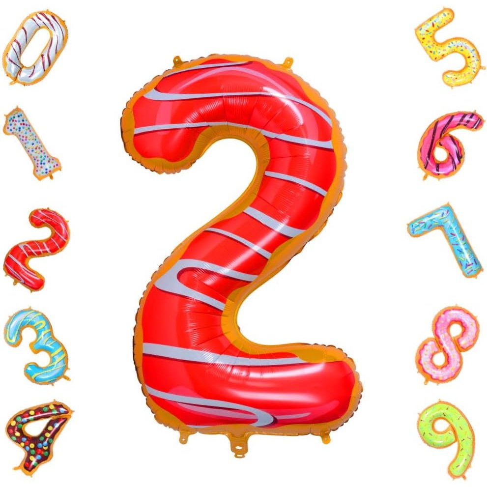 Balon din Folie Metalizata Flippy, Figurina Cifra, Imprimeu Gogosi, Tema Aniversare 100 cm, Ambalaj Individual, Pai inclus, Umflare cu Aer sau Heliu, Multicolor, Cifra 2