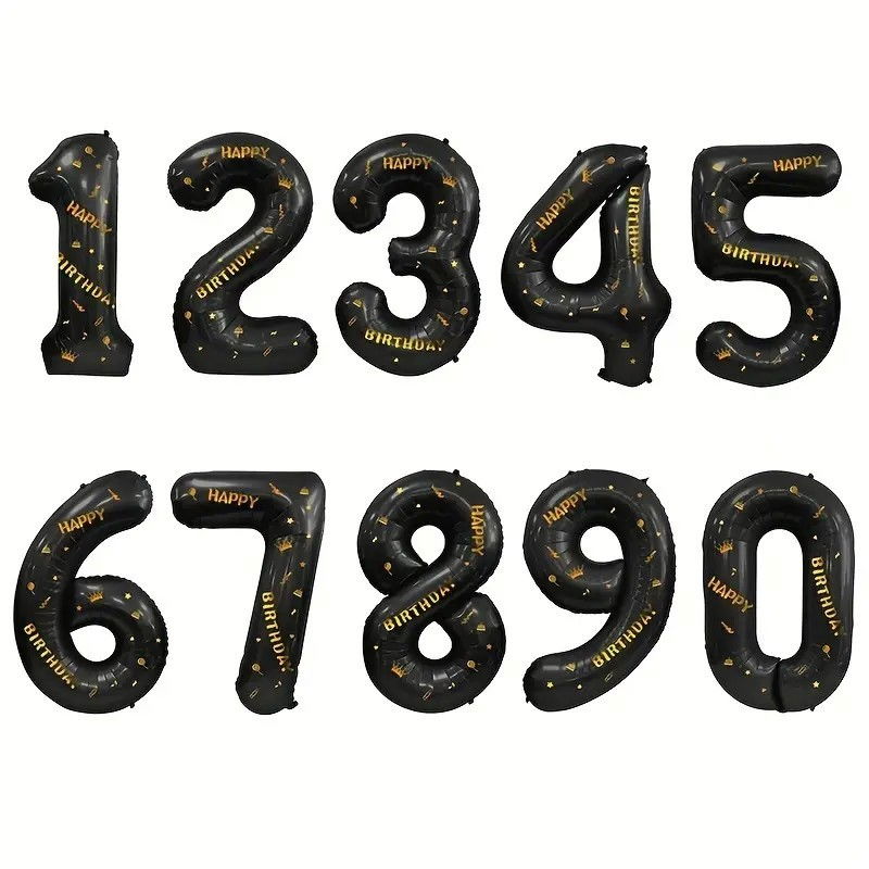 Balon din Folie Metalizata Flippy, Figurina Cifra, Scris Happy Birthday, Tema Aniversare 100 cm, Ambalaj Individual, Pai inclus, Umflare cu Aer sau Heliu, Negru, Cifra 2