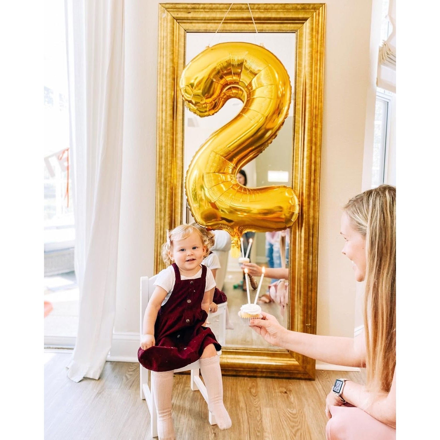 Balon din Folie Metalizata Flippy, Figurina Cifra, Tema Aniversare 100 cm, Ambalaj Individual, Pai inclus, Umflare cu Aer sau Heliu, Auriu, Cifra 2