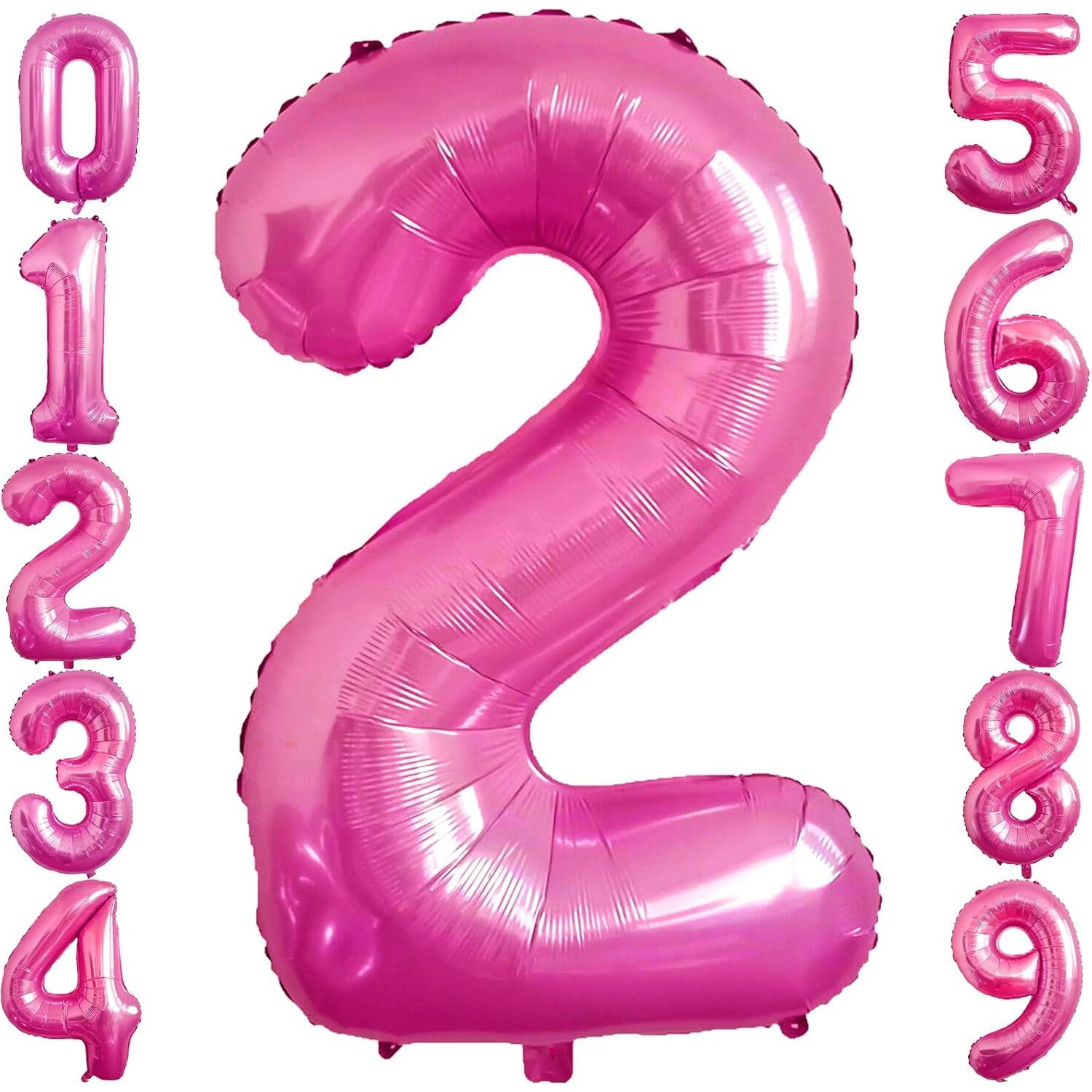 Balon din Folie Metalizata Flippy, Figurina Cifra, Tema Aniversare 40 cm, Ambalaj Individual, Pai inclus, Umflare cu Aer sau Heliu, Roz, Cifra 2
