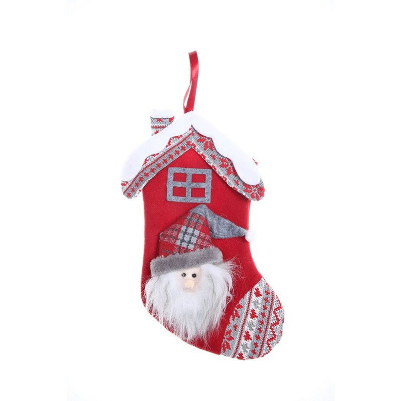 Ciorap Cadouri, model casa, culoare rosie, imprimeu Mos Craciun, marimea 15x30 cm, Flippy
